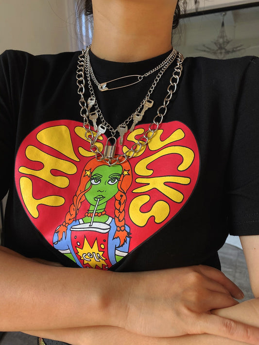 Plate Pendant Dual Lap Alloy Necklace for Women