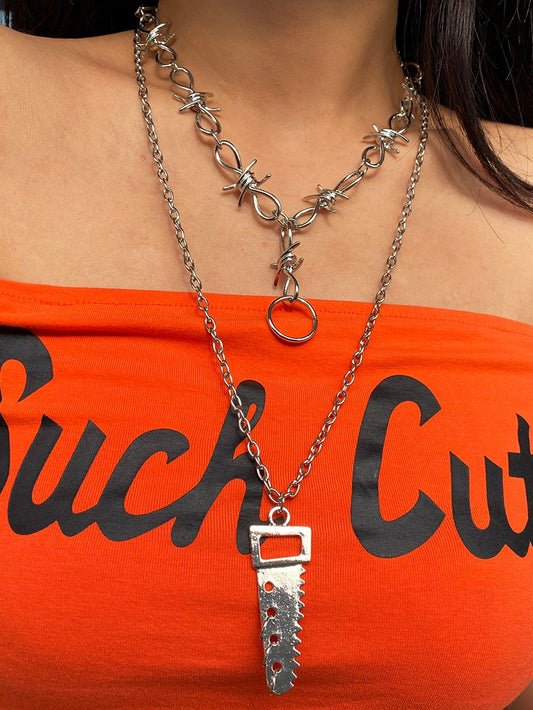 2pcs Metallic Saw & Knot Charm Necklace for Women