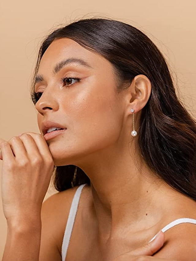 1 Pair Gold Pearl Huggie Hoop Earrings with Charms Fashion Drop Dangle Earrings for Women Handmade Karma Circle Jewelry for Women