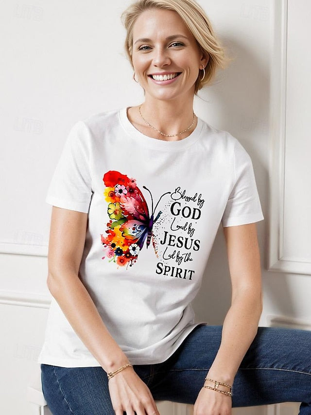 100% Cotton Life is Beautiful Feather Print Women‘s Casual Daily T shirt Short Sleeve Crew Neck T shirt
