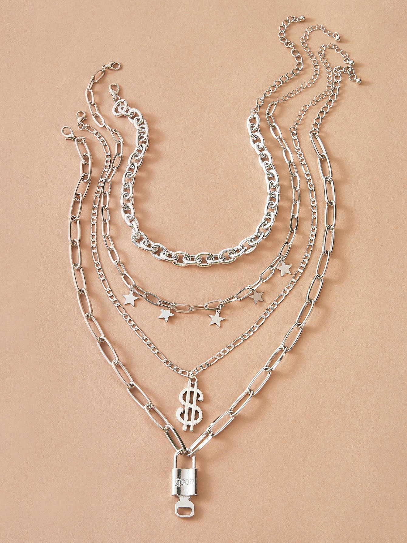 4pcs Star Tassel & Dollar Charm Necklace for Women