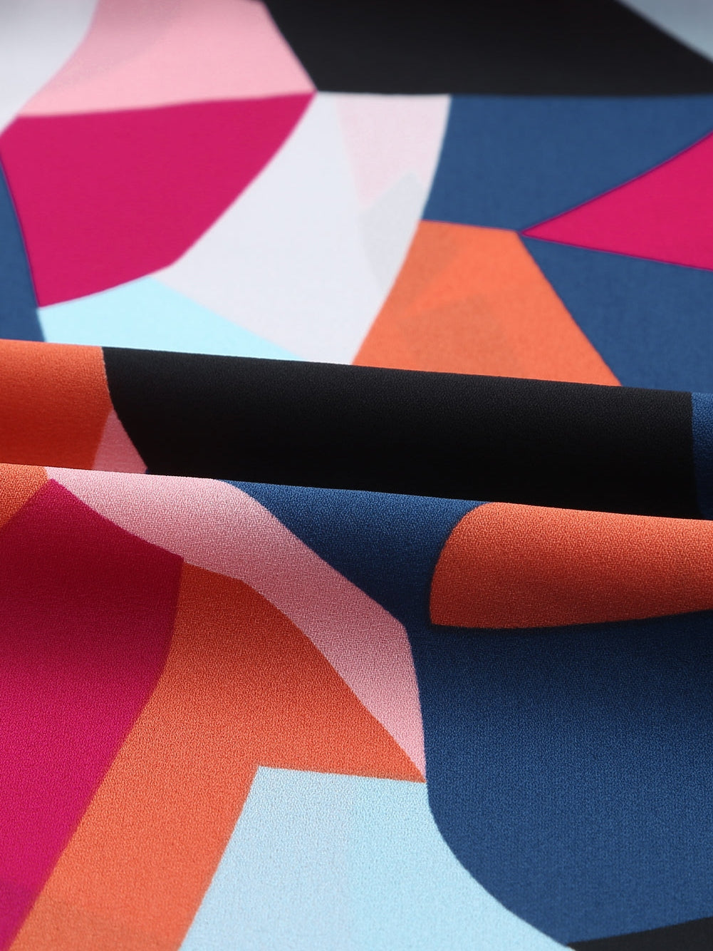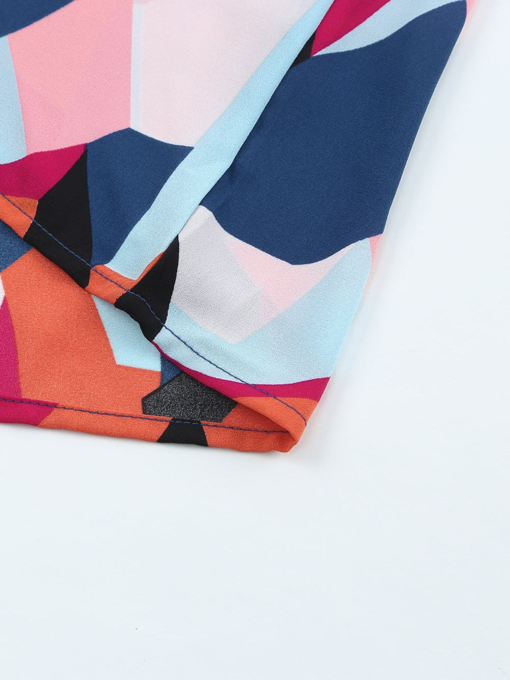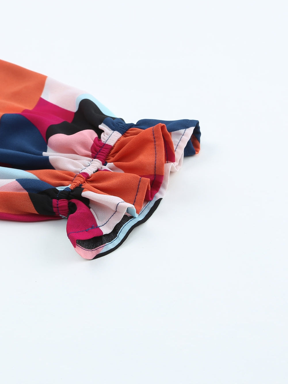 Abstract Pattern Crewneck Ruffled Puff Sleeve Blouse