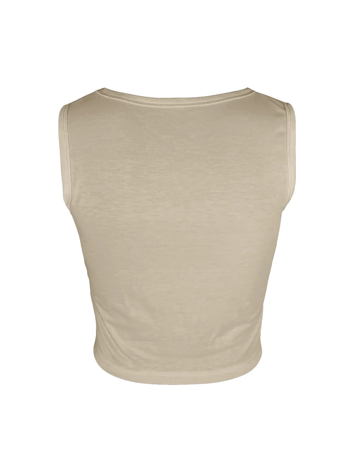 With its unique design and comfortable fit, this crop tank top is not only a fashion statement but also a versatile piece that enhances your summer wardrobe. The sleeveless style allows for easy layering or can be worn solo for a relaxed vibe.