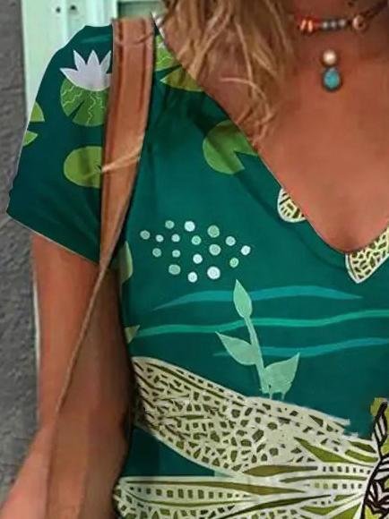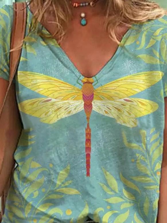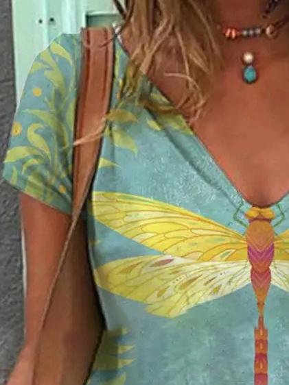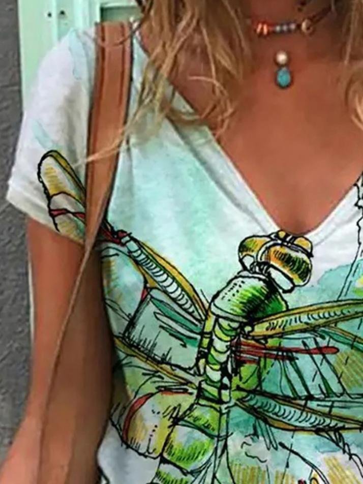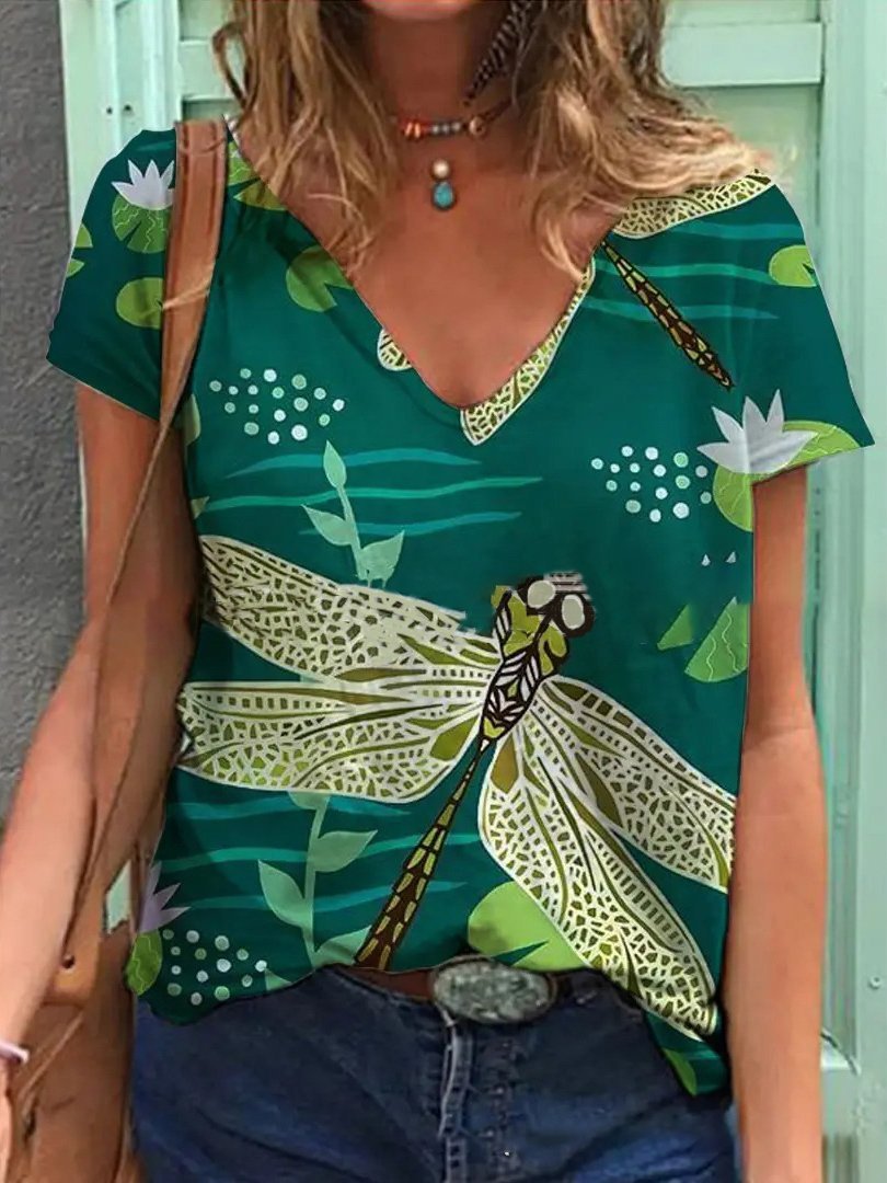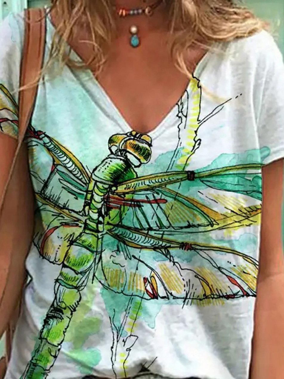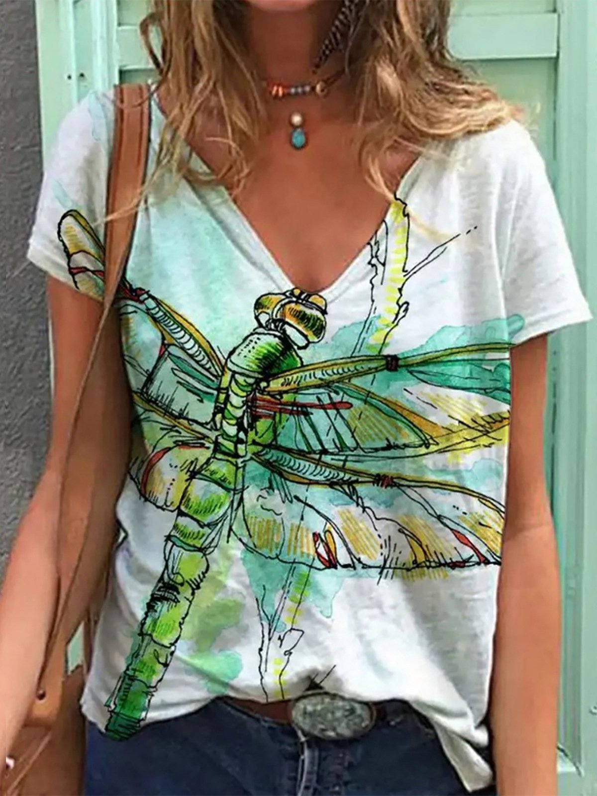 - Feature: Animal Insect Fashion Print, V Neck, Short Sleeves
