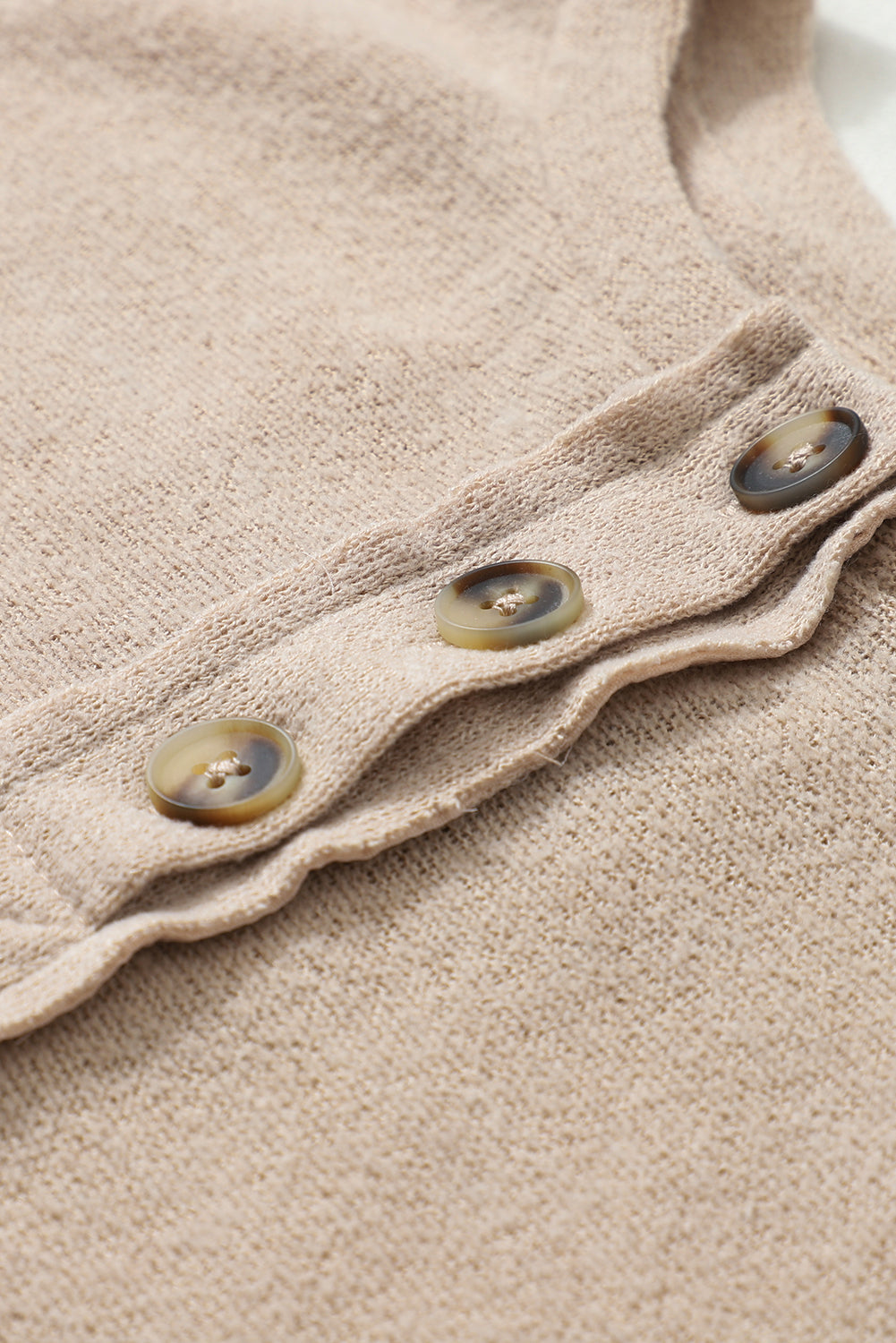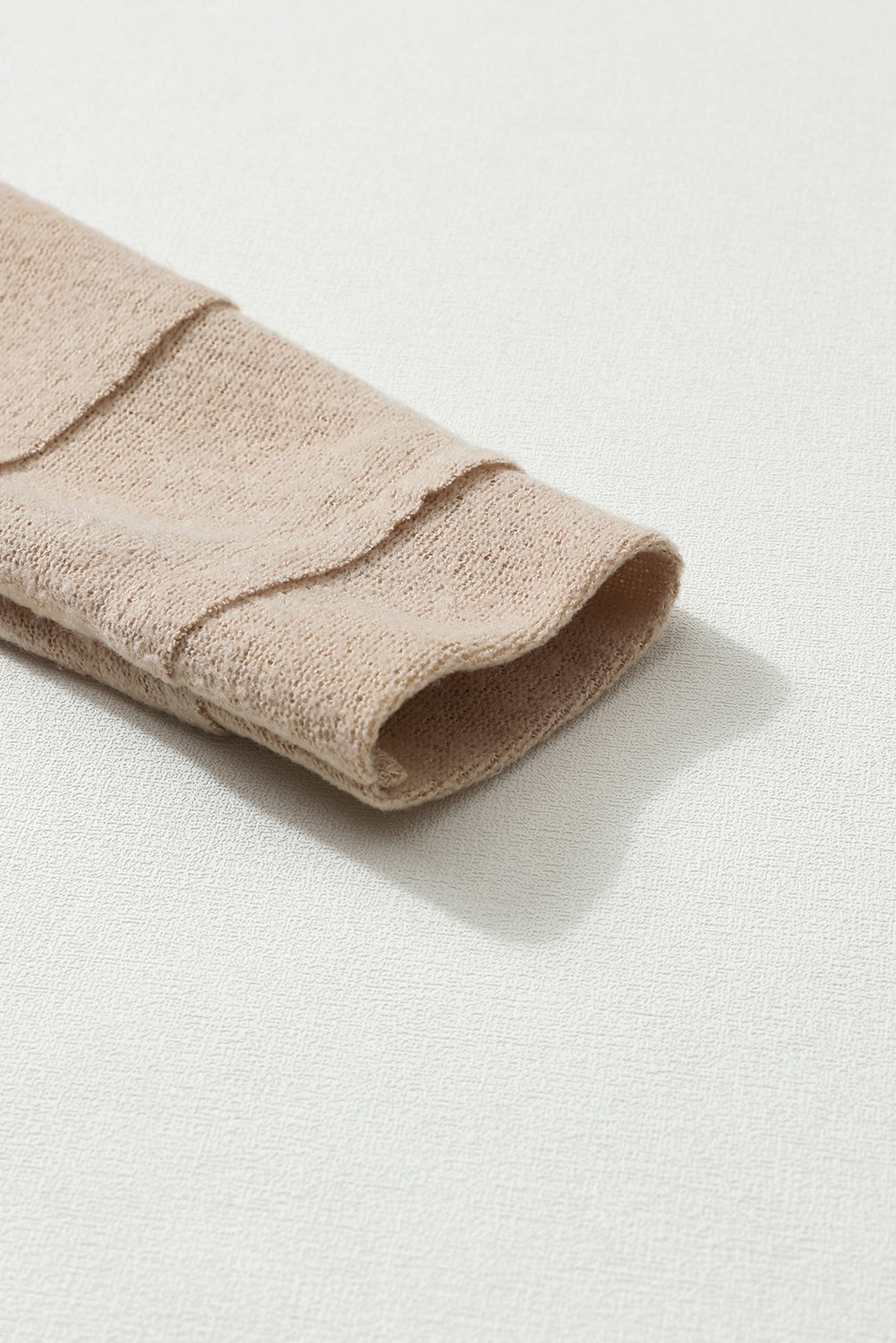 Apricot Button Split Neck Retro Patchwork Long Sleeve Top
