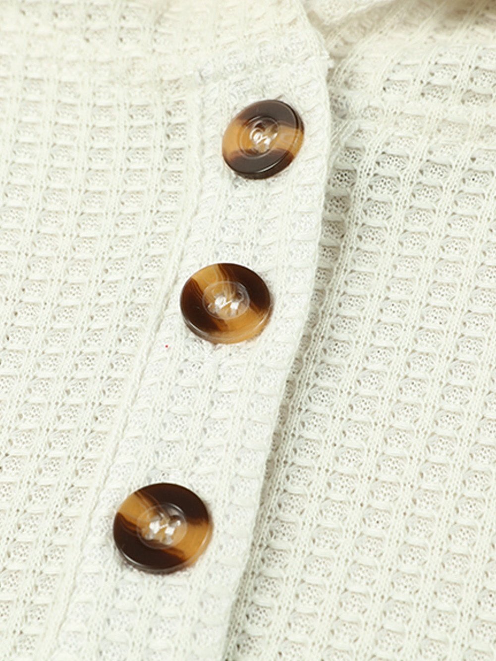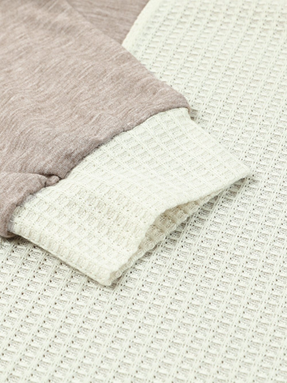 Apricot Color Block Waffle Knit Hooded Sweatshirt