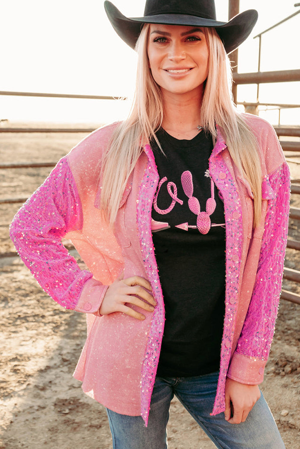 Introducing our stunning Apricot Pink Mineral Wash Sequin Patchwork Flap Pocket Shacket, designed to add a touch of sparkle and sophistication to your everyday style. This standout piece is perfect for those who appreciate a blend of casual elegance and eye-catching details.