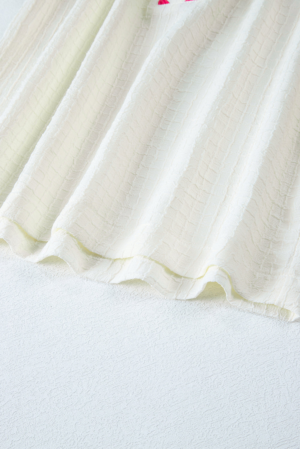 Beige Floral Embroidered Ricrac Puff Sleeve Textured Blouse