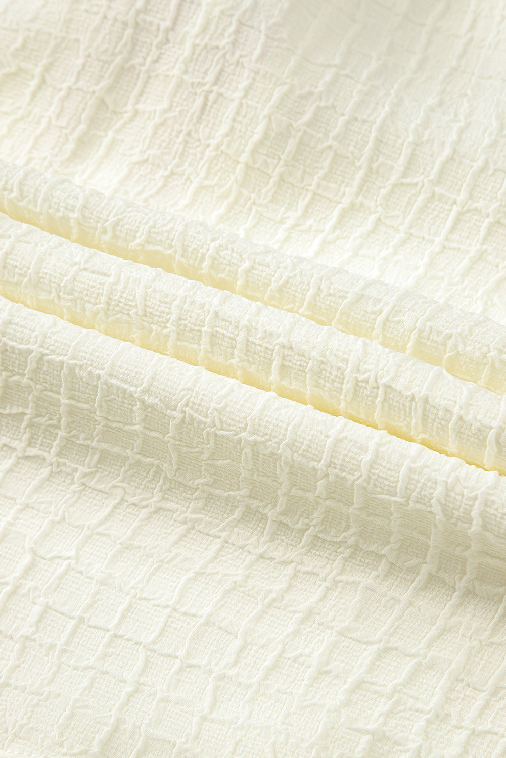 Elevate your wardrobe with our exquisite Beige Floral Embroidered Ricrac Puff Sleeve Textured Blouse, designed for the modern woman who appreciates elegance and playfulness in her fashion choices.