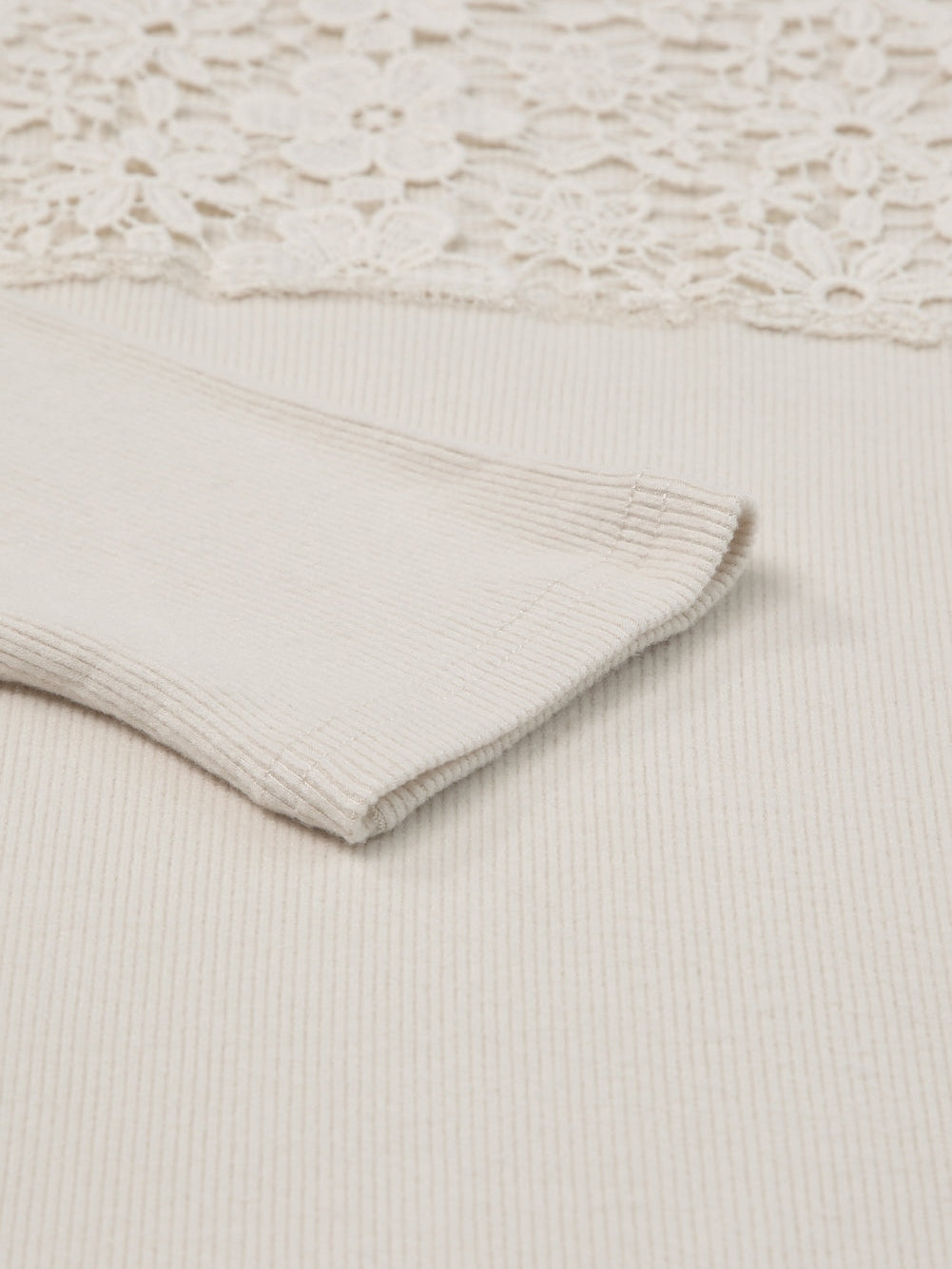 Beige Lace Crochet V Neck Long Sleeve Top