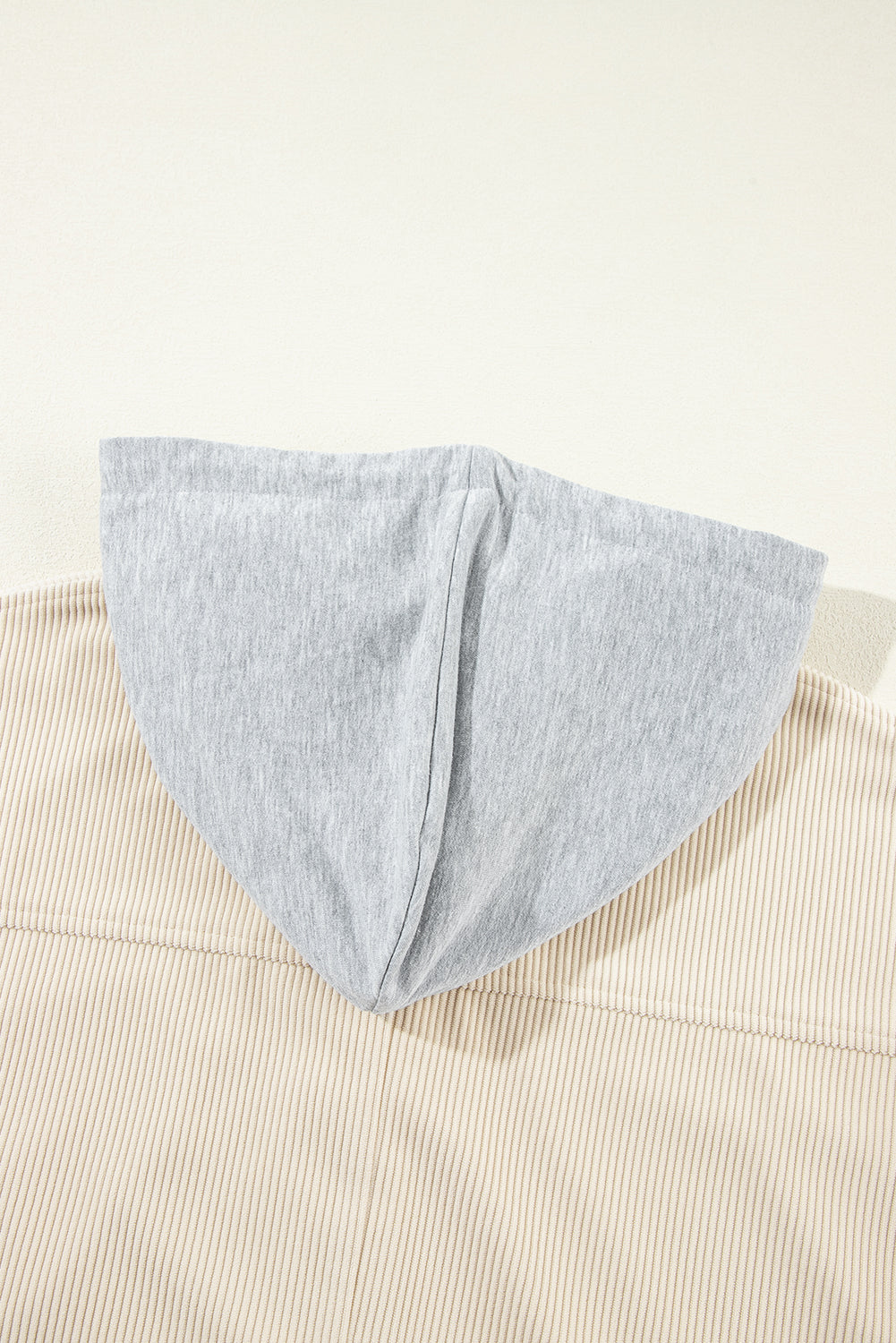 Elevate your outerwear collection with this trendy shacket that blends comfort, style, and practicality. Embrace your inner fashionista with our Beige Oversized Corduroy Contrast Hooded Shacket!
