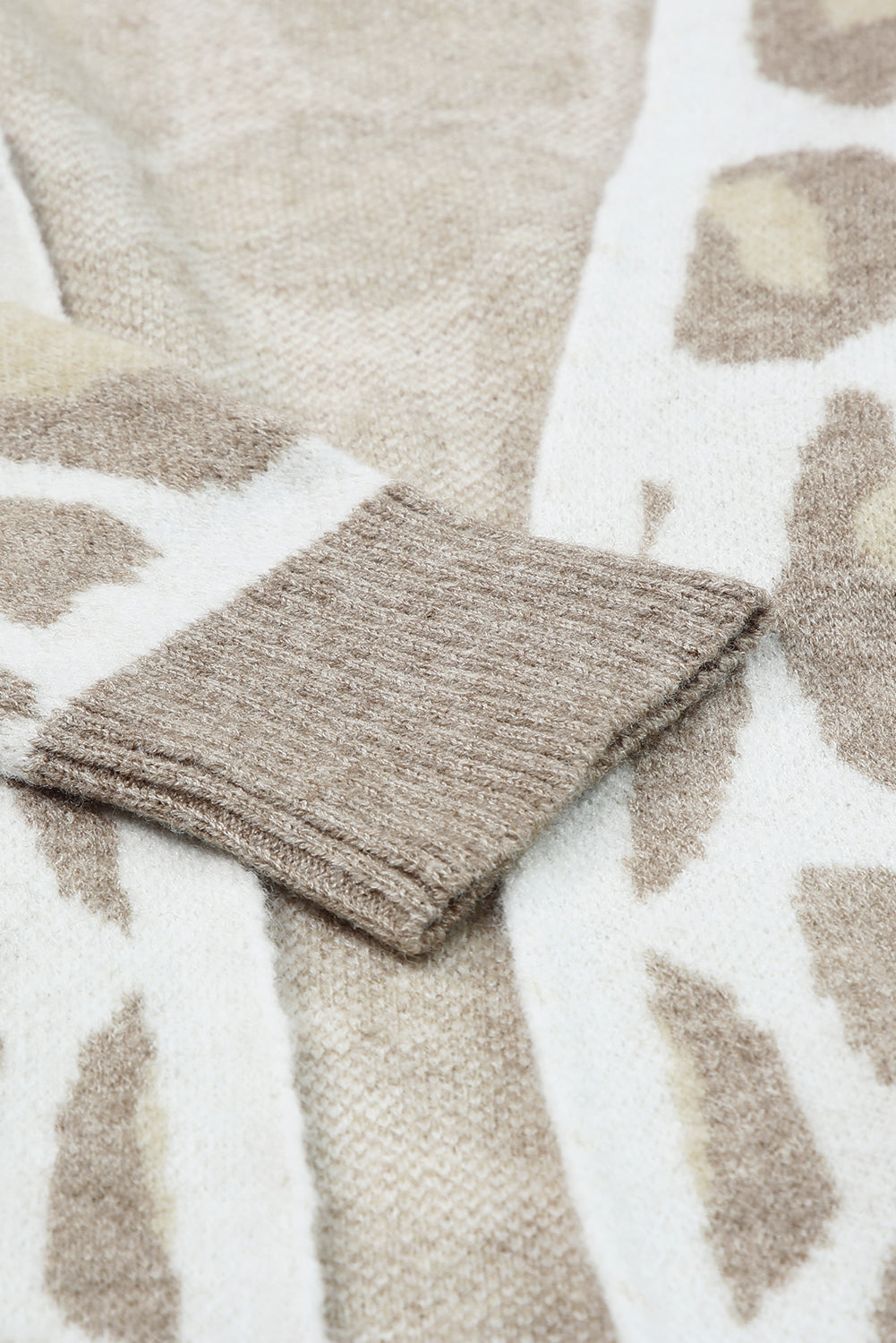 Stay Stylish and Cozy in our Beige Plus Size Leopard Pattern Cardigan