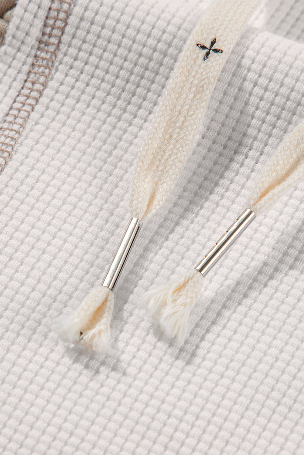 Beige Quilted Textured Patchwork Loose Fit Hooded Jacket