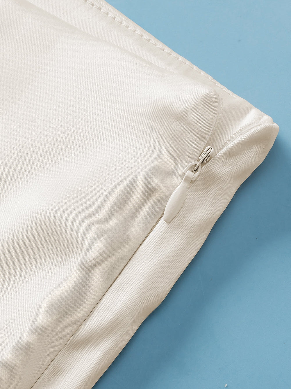 Beige Satin Split Ruffled High Waist Plus Size Skirt