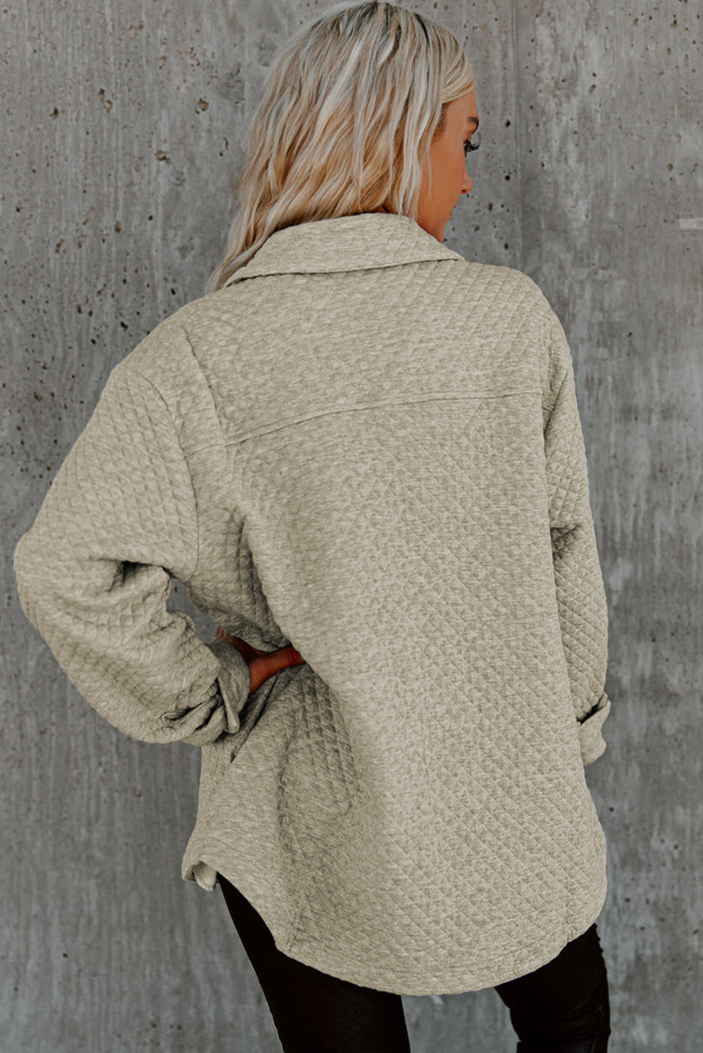Beige Sequin Rugby Football Quilted Buttoned Turn Down Collar Shacket
