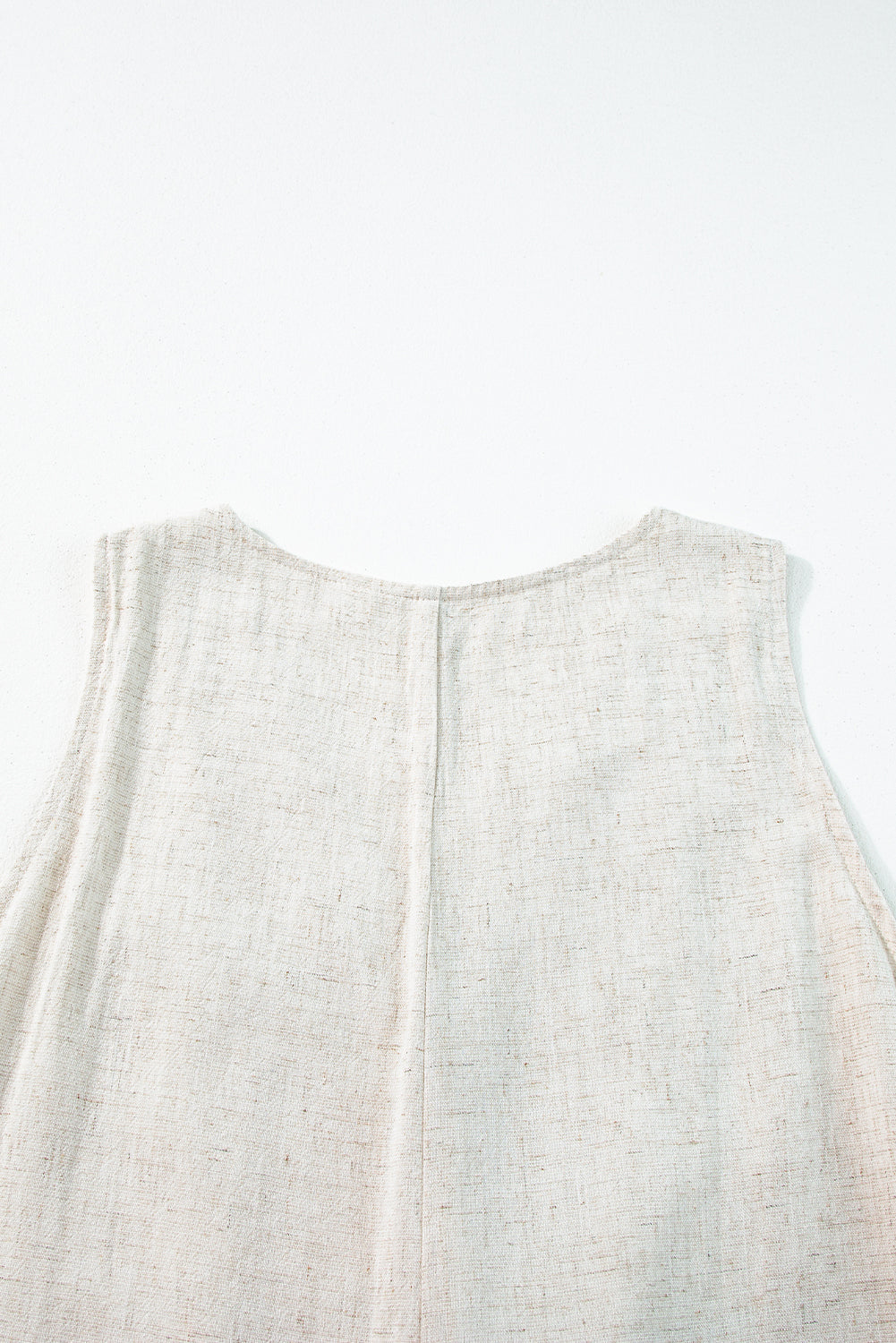 Beige Sleeveless V Neck Buttoned Front Chest Pocket Romper