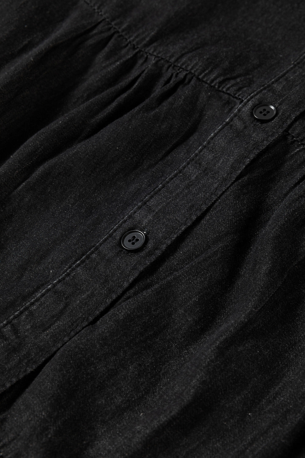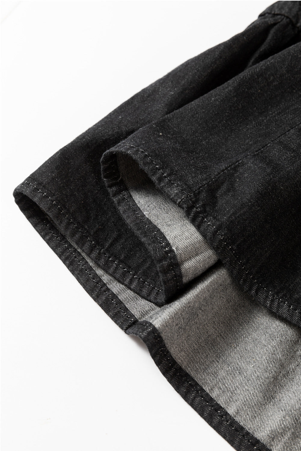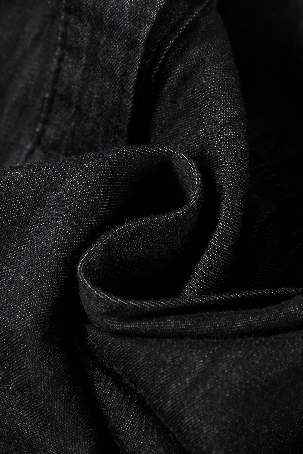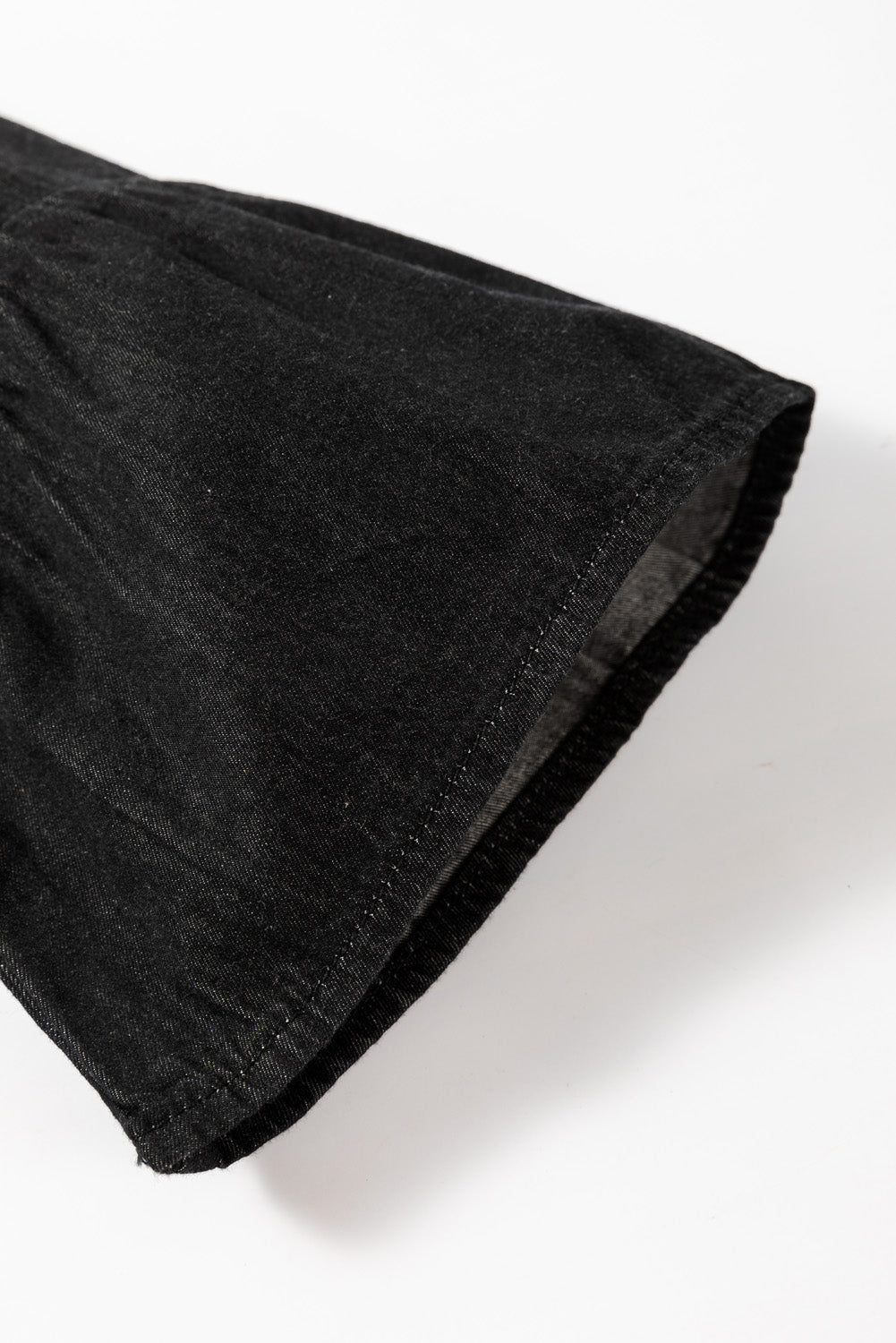 Discover Effortless Elegance with Our Black Chambray Ruffled Mini Dress