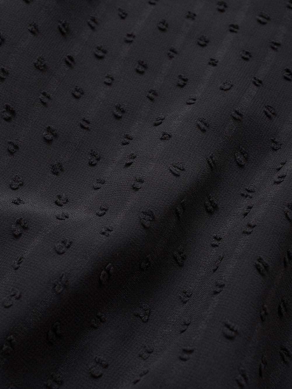 Made of lightweight and breathable material, this elegant black blouse is skin-friendly and comfortable to wear. The blouse features Swiss Dot fabric with lace trim on the neckline and sleeves, giving it a simple yet sophisticated look.