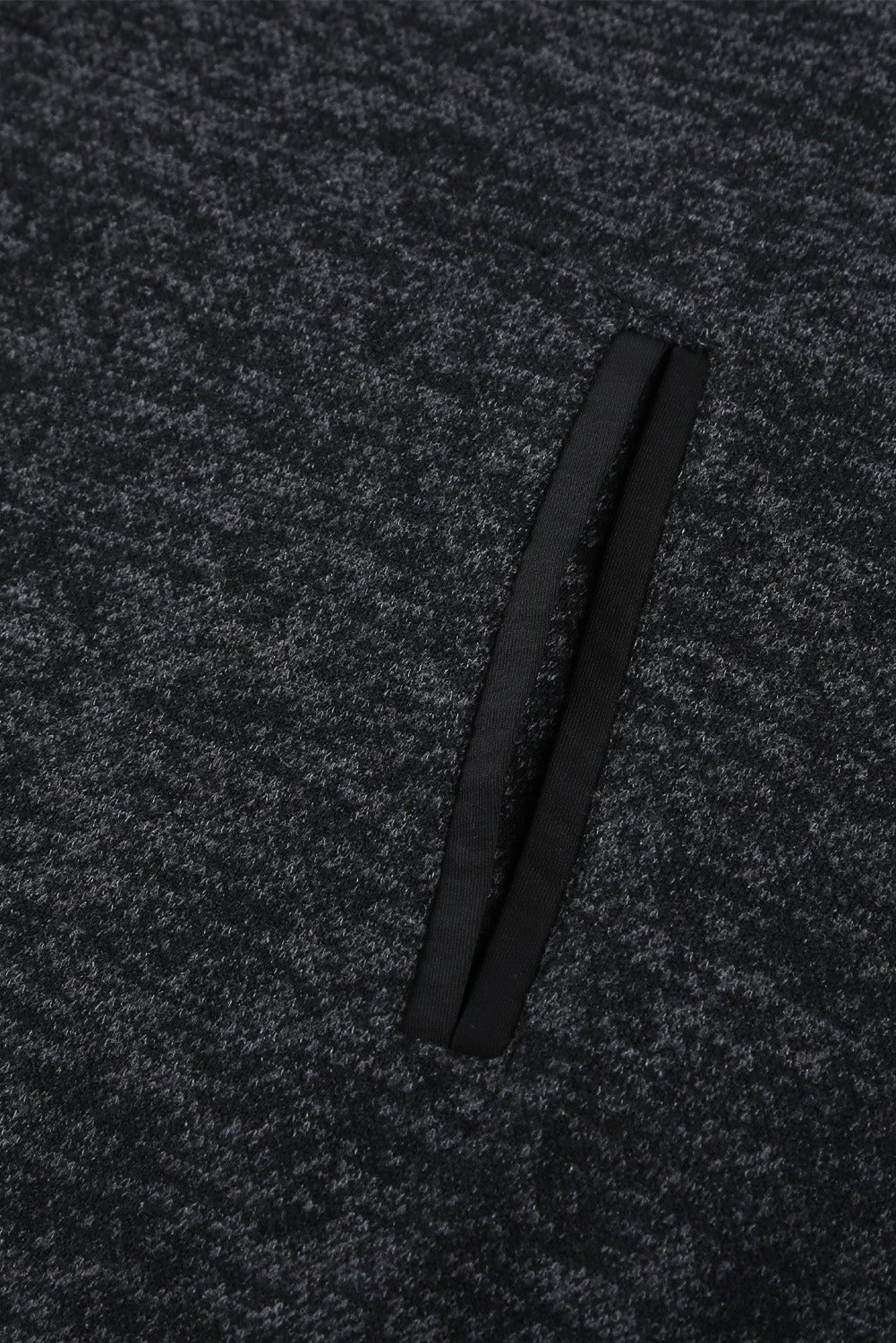 Black Heathered Print Button Snap Neck Pullover Hoodie