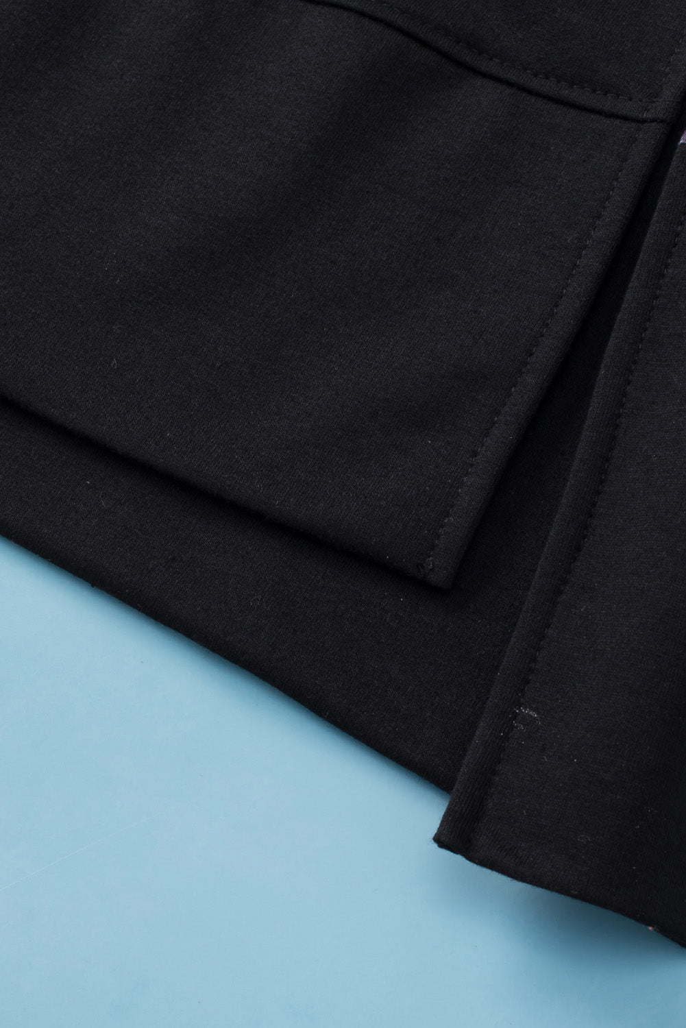 Black Leopard Patchwork Bishop Sleeve Slit Sweatshirt