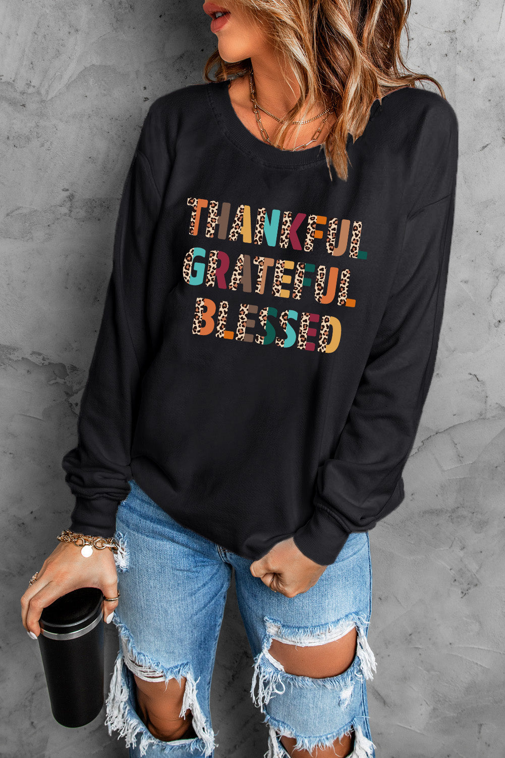 Black Leopard TANKFUL GRATEFUL BLESSED Graphic Sweatshirt