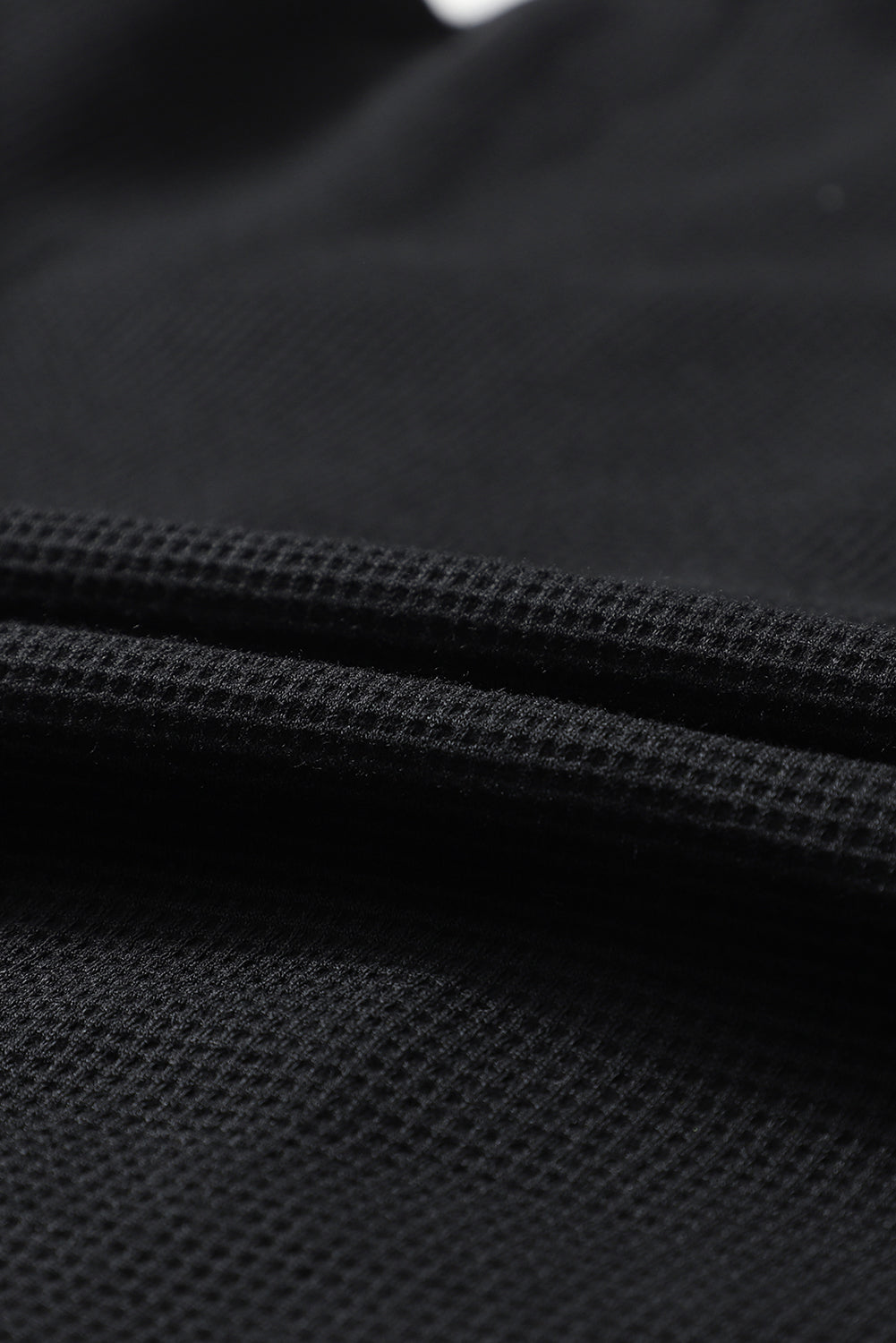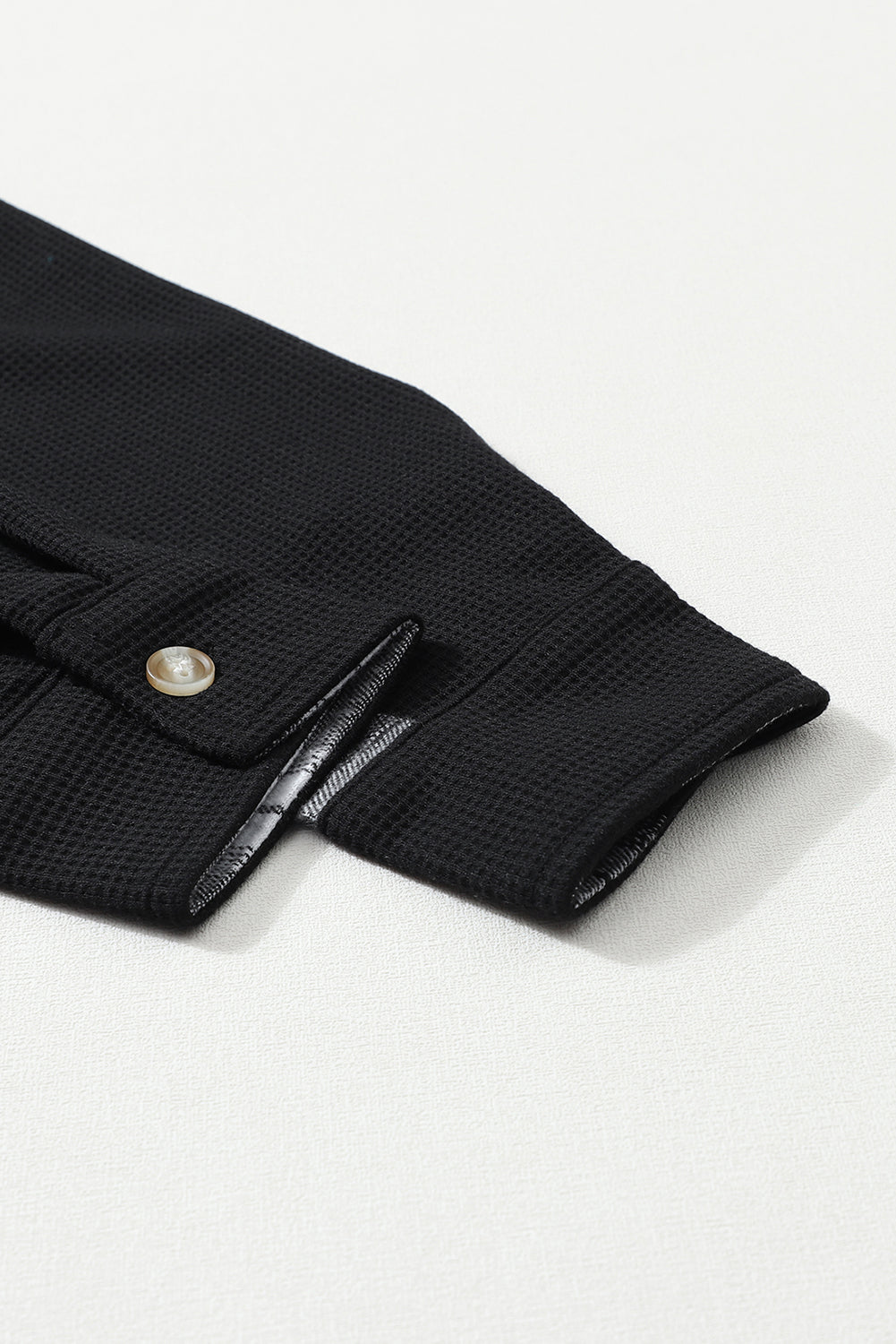 Elevate Your Wardrobe with Our Black Plaid Patchwork Waffle Thermal Knit Shacket