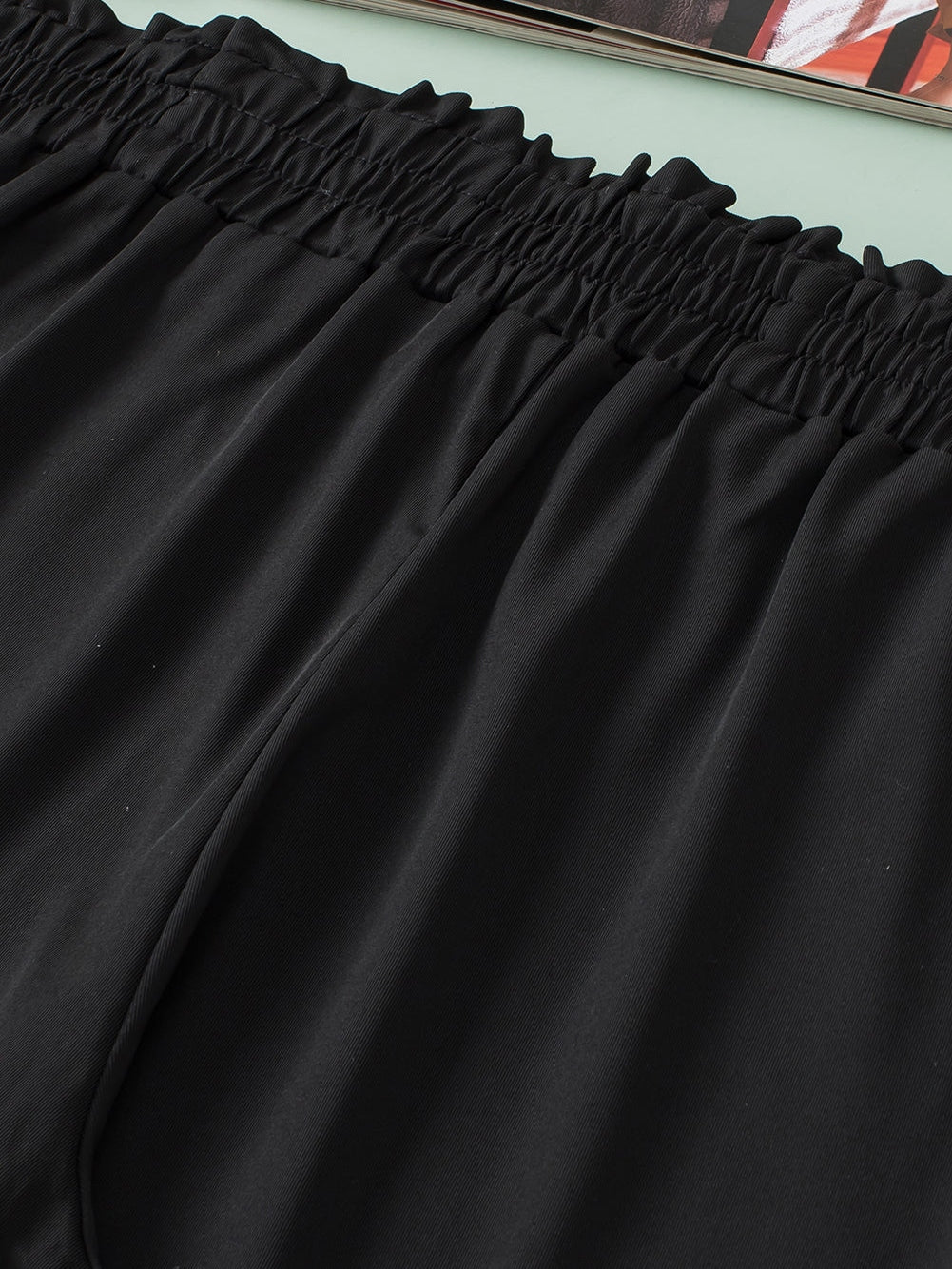 Elegant Black Plus Size High Waist Frilled Soft Pants with Pockets