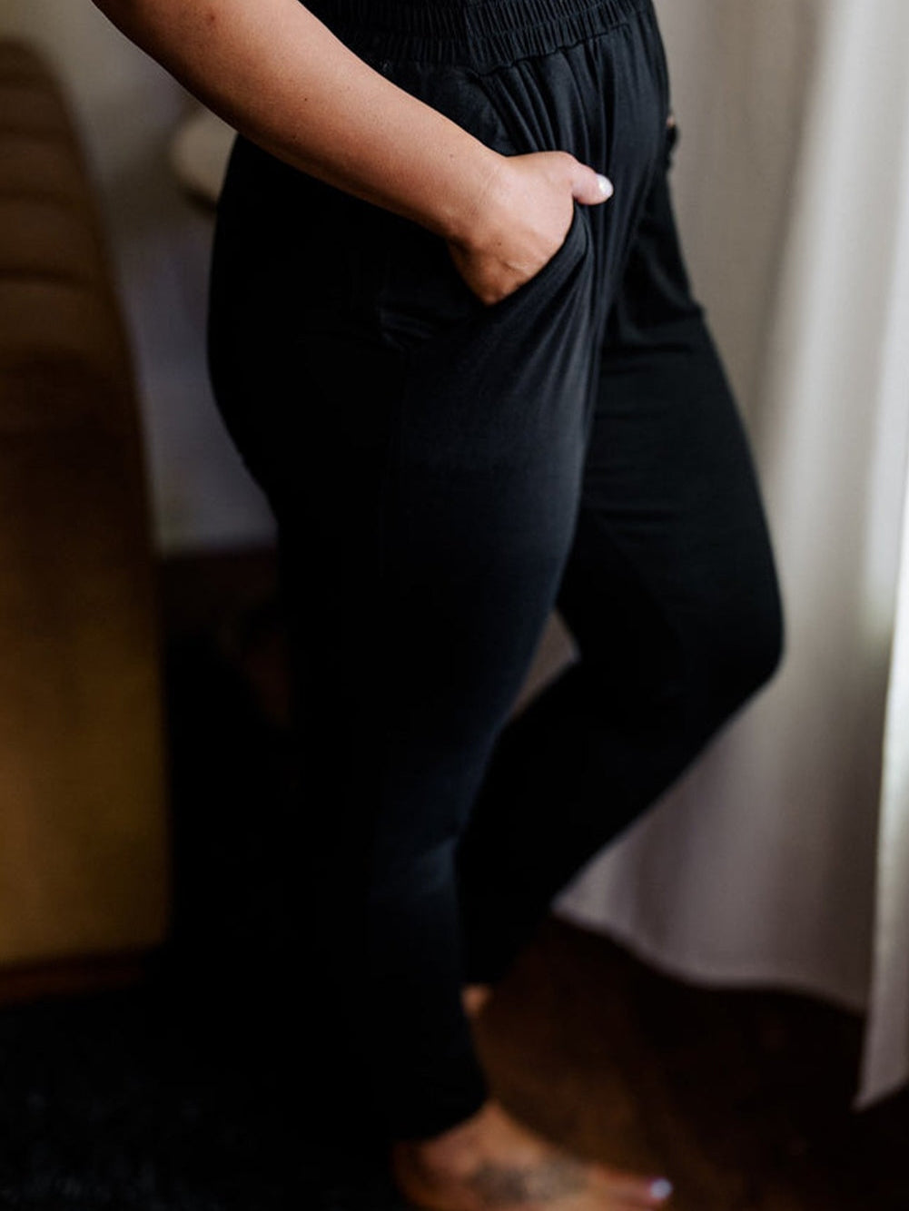 Upgrade Your Wardrobe with Black Plus Size Frill High Waist Pocketed Soft Pants