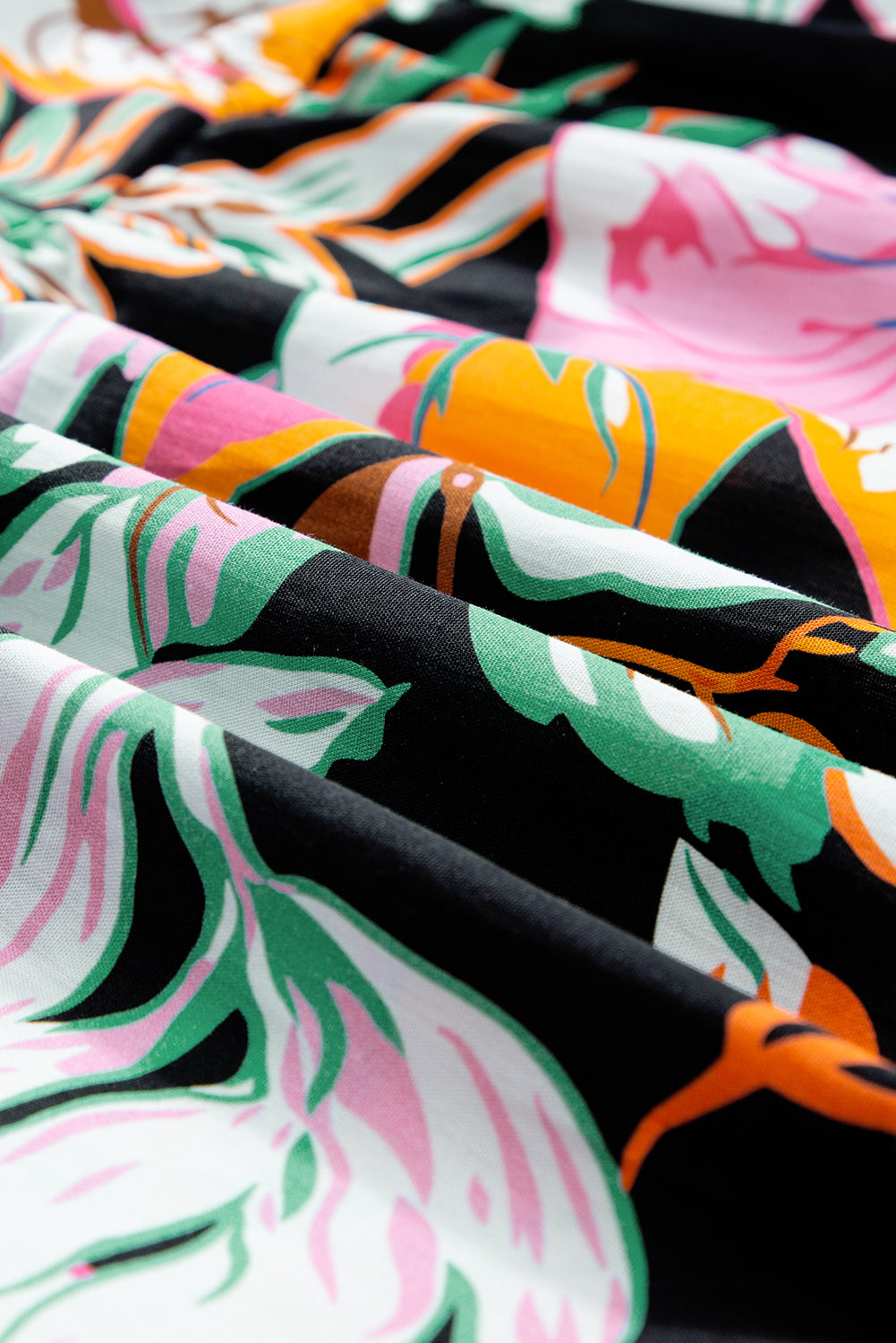 - Design: Tropical floral print in vibrant multicolors