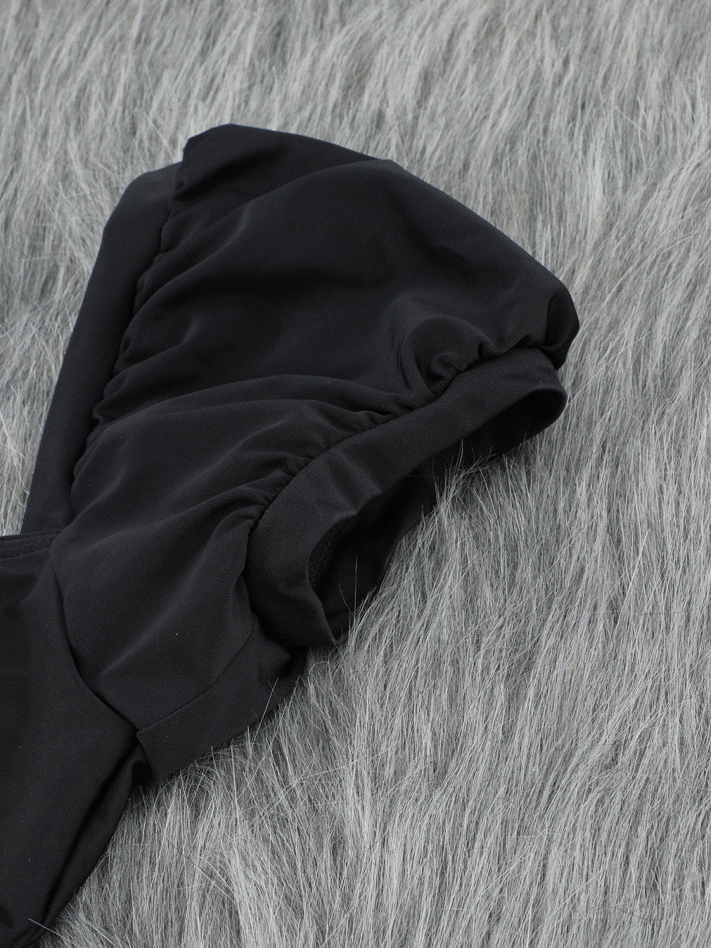 Black Sexy Bubble Sleeves High Waisted Swimsuits