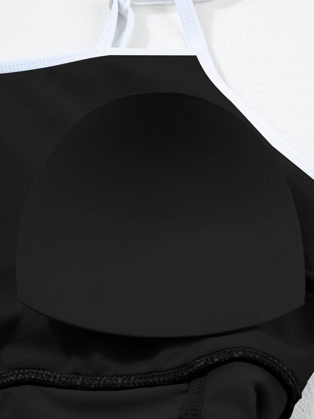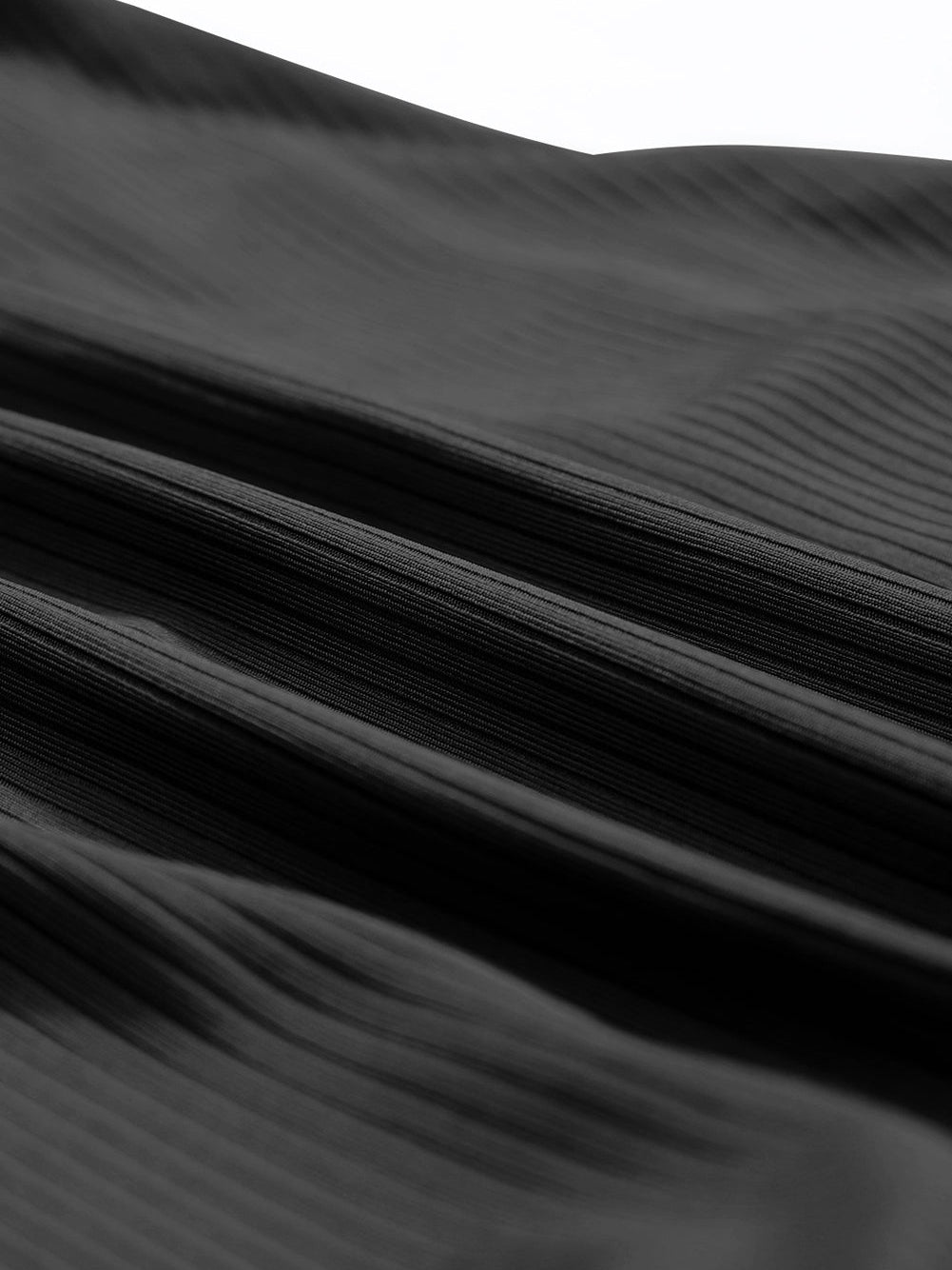 Black Sporty Ribbed Spaghetti Straps One Piece Swimdress