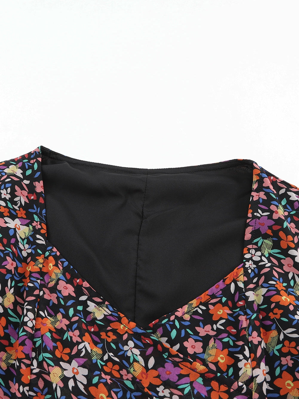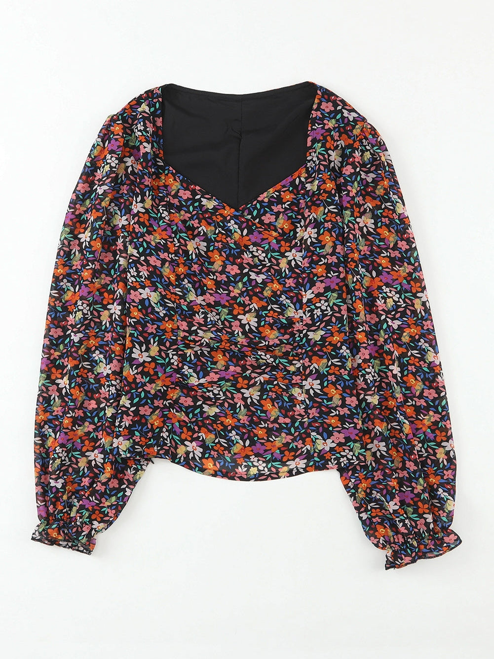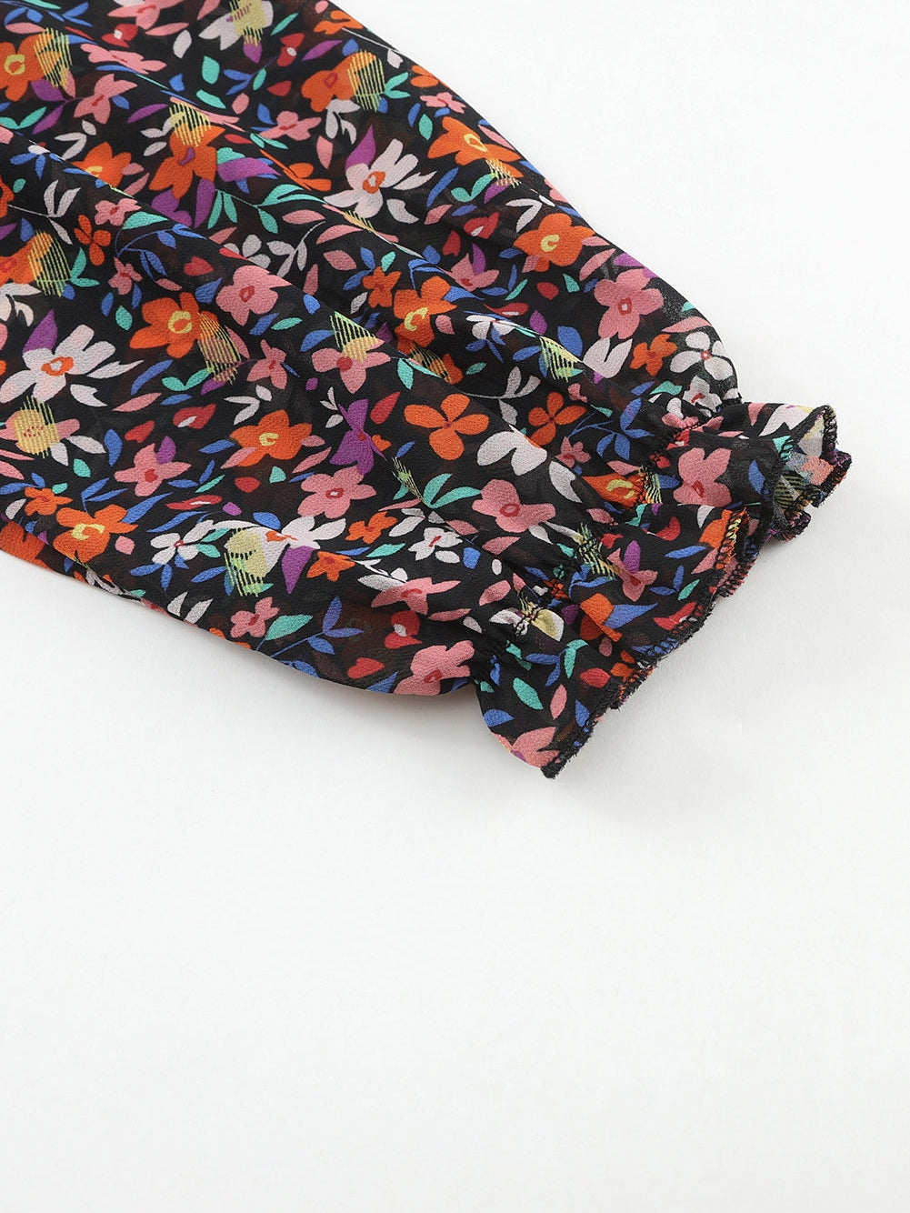 Enhance your wardrobe with our Black V Neck Bubble Sleeve Floral Blouse. This elegant top features: