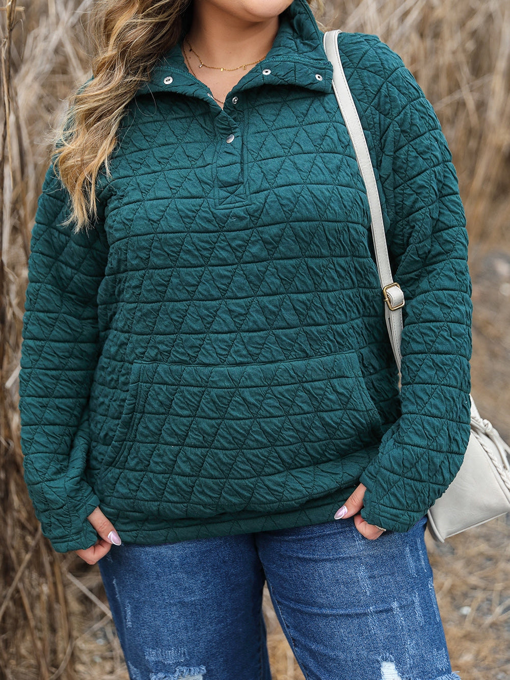 Stay Stylish and Cozy in the Blackish Green Plus Size Quarter Buttoned Quilted Sweatshirt