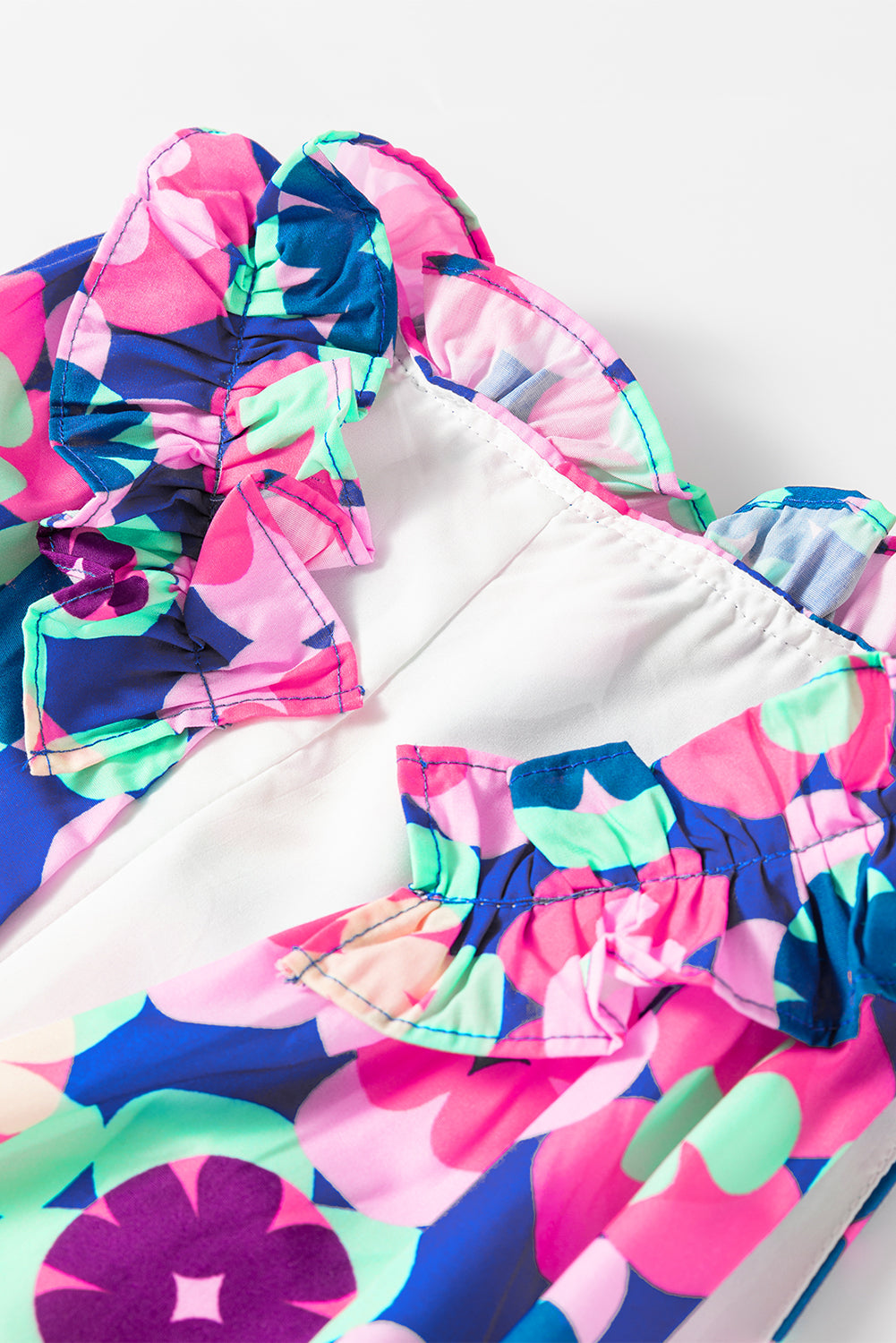 Step into summer with grace and charm in our stunning Blue Floral Print Frilly Neck Sleeveless Tiered Maxi Dress. Designed for the modern woman who relishes in beauty and comfort, this dress is the perfect addition to your seasonal wardrobe.