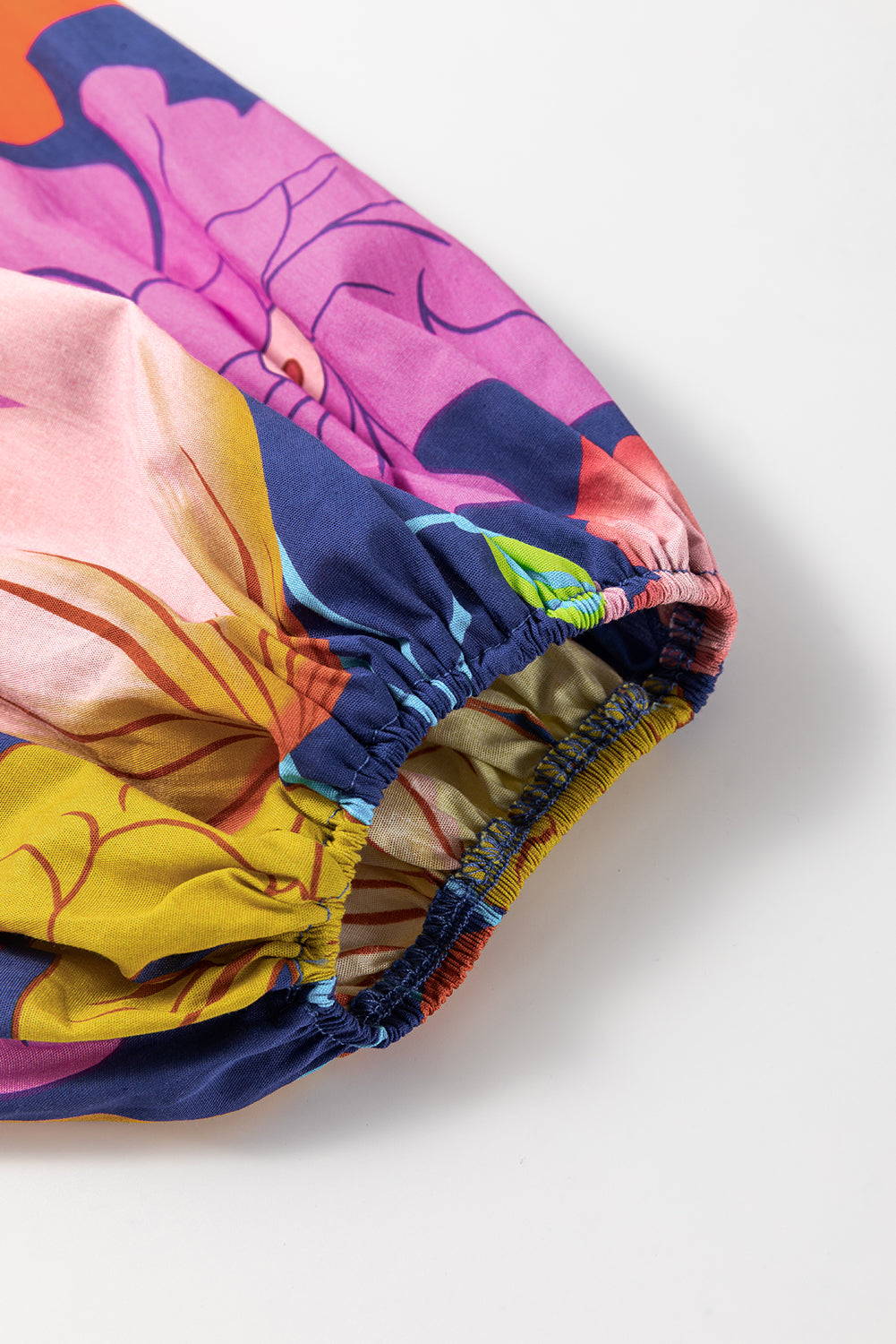 Floral Print Balloon Sleeve Babydoll Dress for Plus Size Women