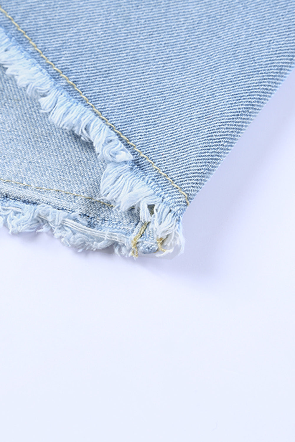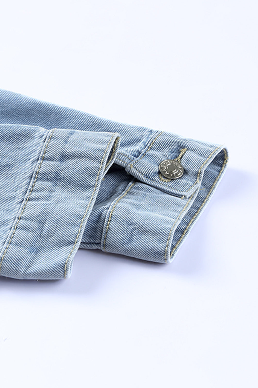 Upgrade Your Style with the Blue Plus Size Leopard Ripped Cropped Denim Jacket