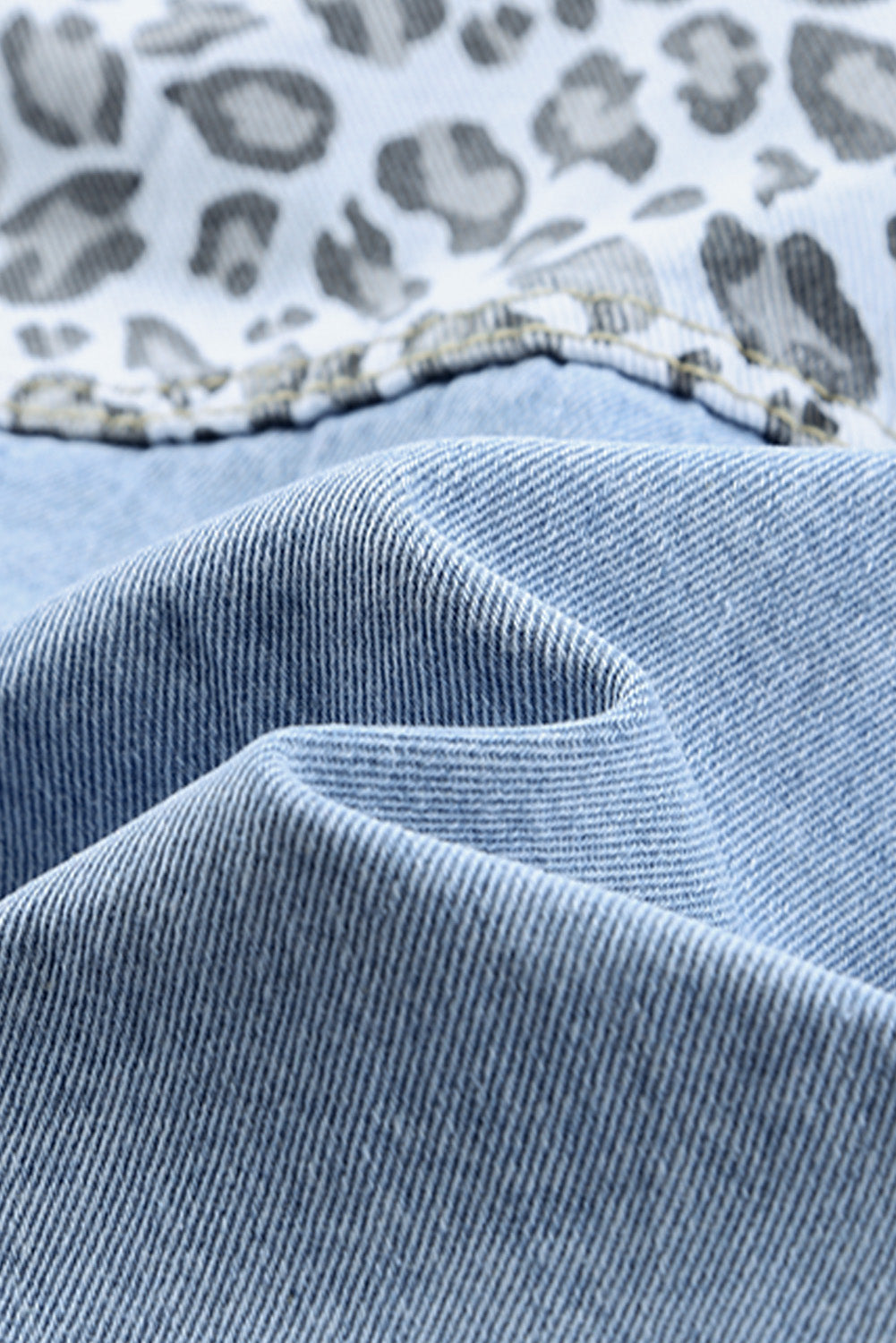 Leopard Patchwork Blue Denim Jacket for Curvy Fashionistas