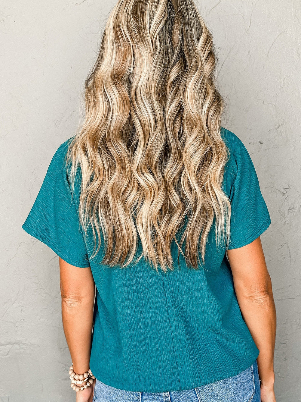 Blue Sapphire Bubble Hem V Neck Textured Plus Size Top