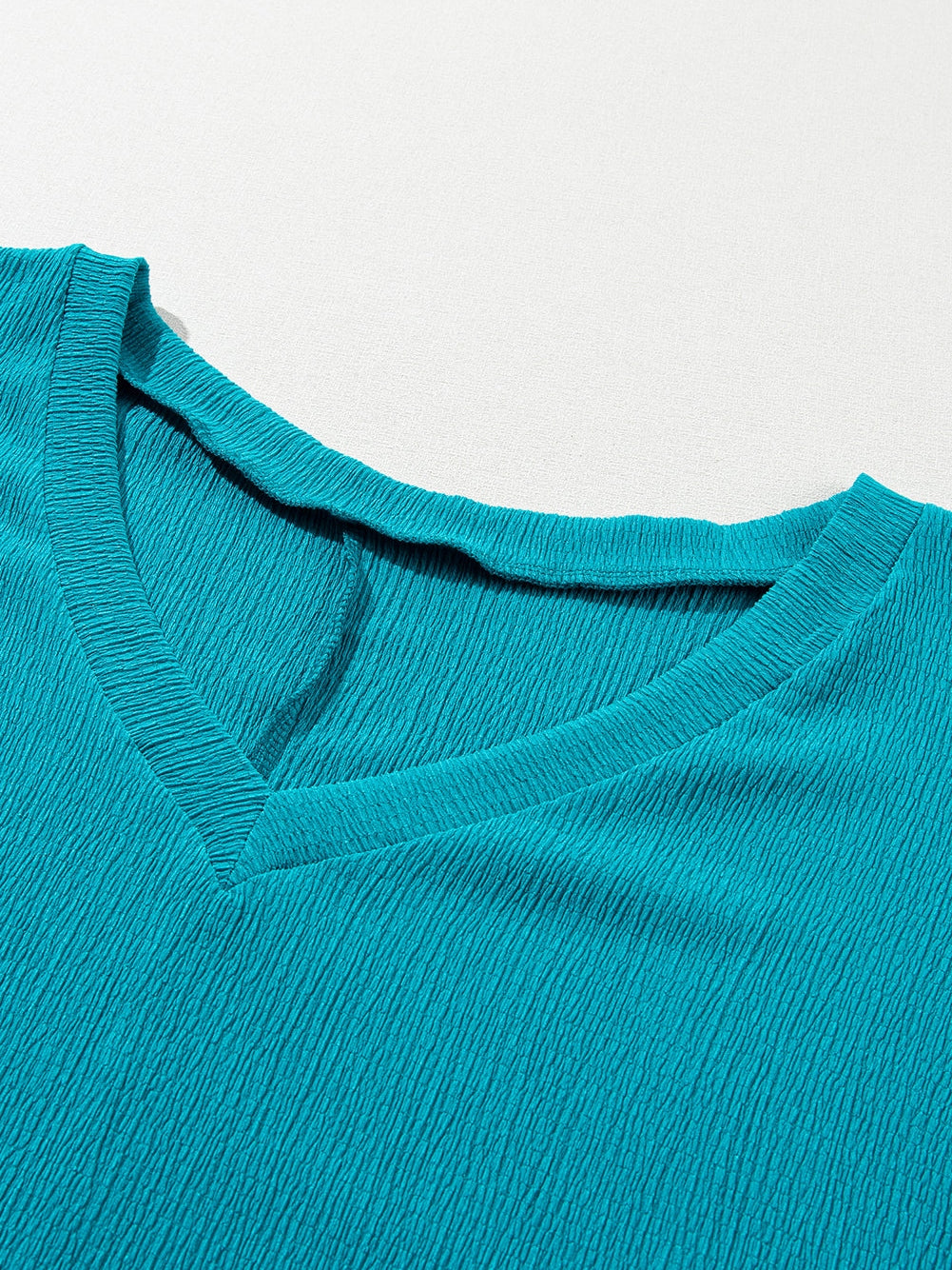 Upgrade Your Wardrobe with the Blue Sapphire Textured V Neck Bubble Hem Plus Top