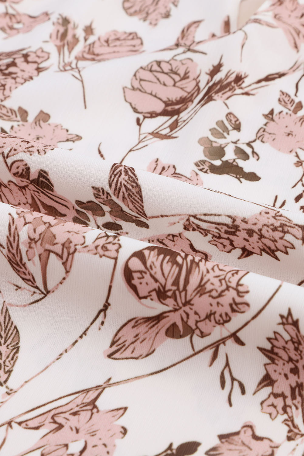Boho Floral Print Split V Neck Bubble Sleeve Blouse