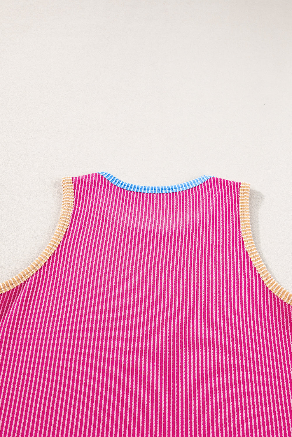 Elevate your summer wardrobe with our Bright Pink Corded Contrast Trim Sleeveless Top and Shorts Set. This chic two-piece ensemble is perfect for casual outings, daily wear, or light exercise, delivering both comfort and style.
