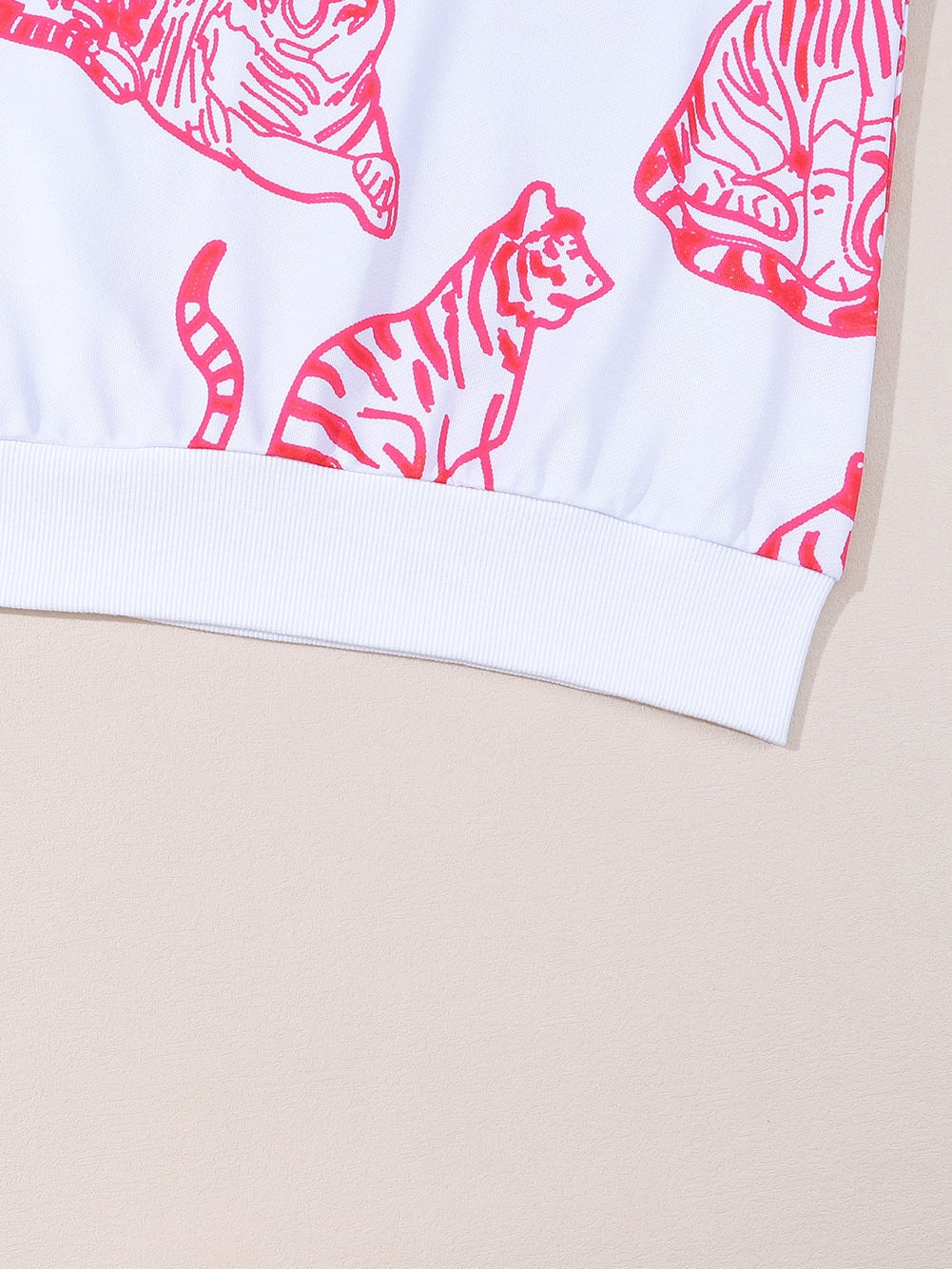 Stay ahead of the fashion game with our Bright White Pink Animal Print Pullover Sweatshirt. Featuring a captivating animal print design, this sweatshirt is both fierce and trendy, perfect for making a bold style statement.