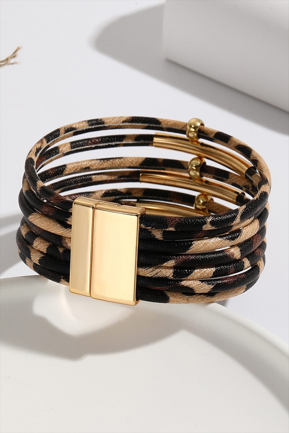Leopard Print Multi-layer Brown Beaded Magnetic Clasp Bracelet
