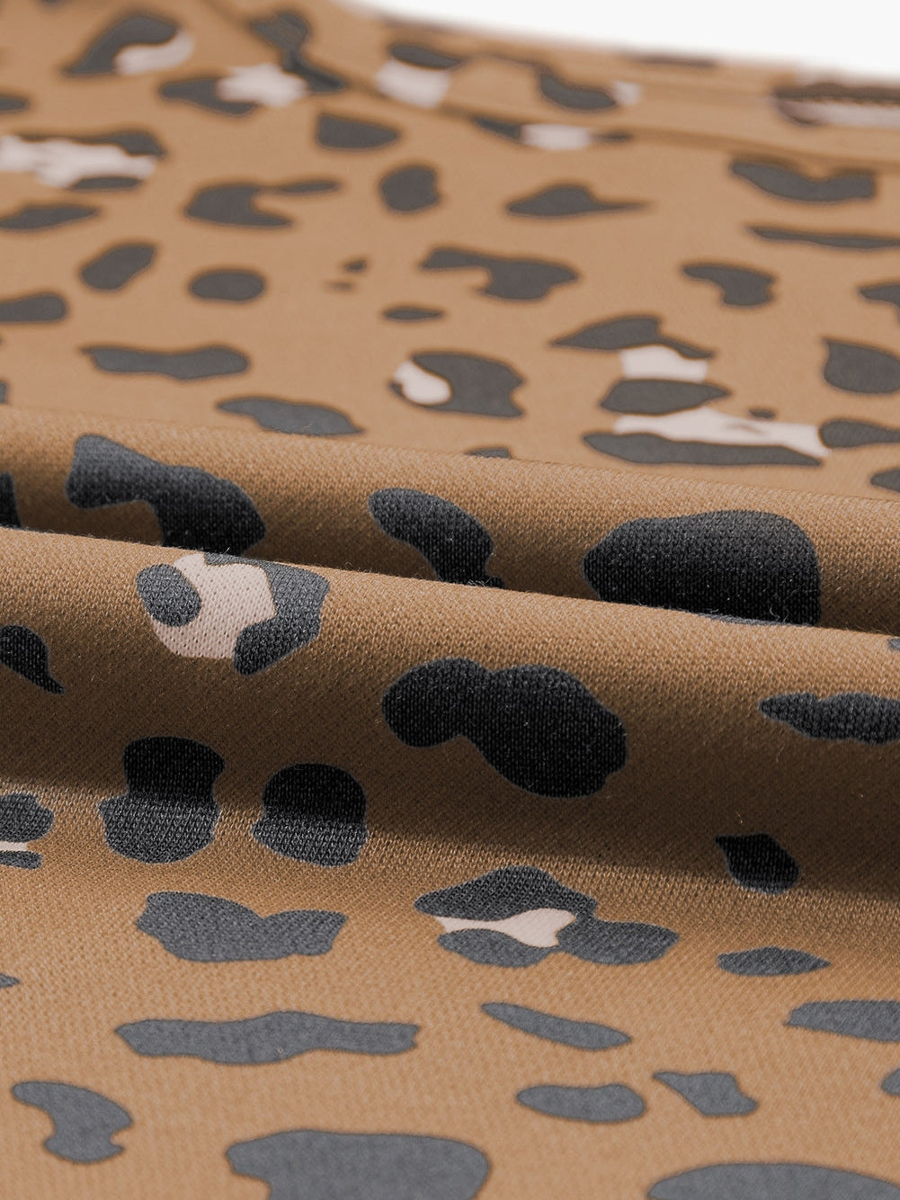 - Pattern: Features a trendy leopard print combined with solid brown patches