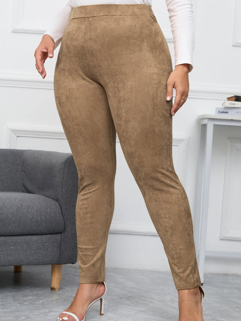 Upgrade Your Style with Camel Plus Size High Rise Faux Suede Skinny Pants