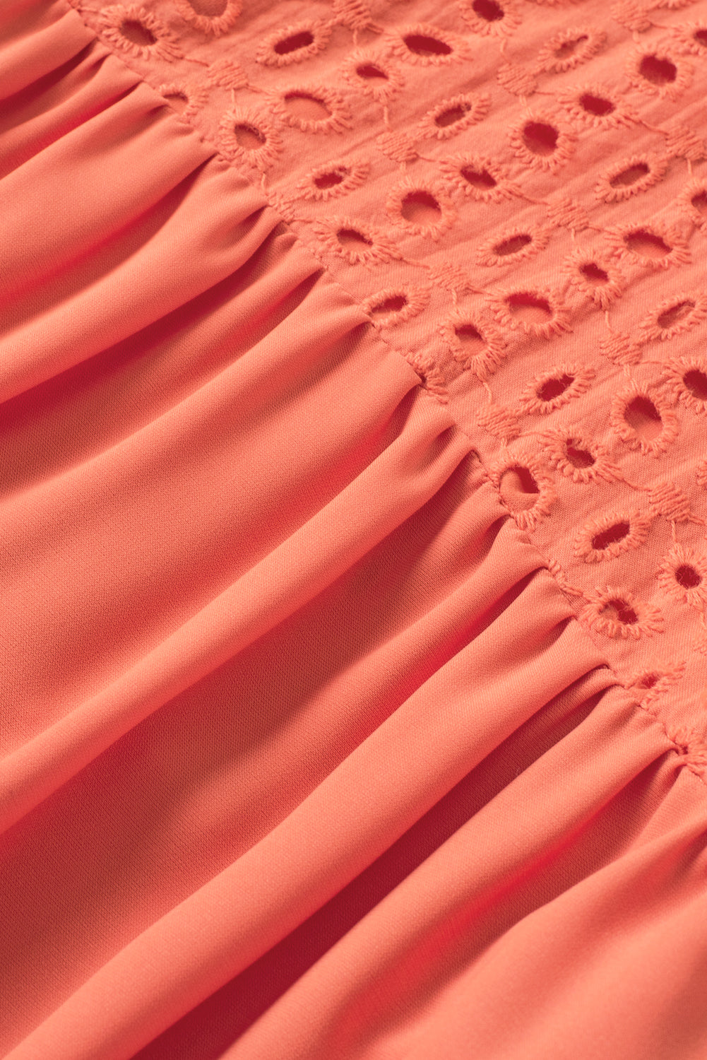 Elegant Eyelet Babydoll Dress with Carrot Contrast Bodice