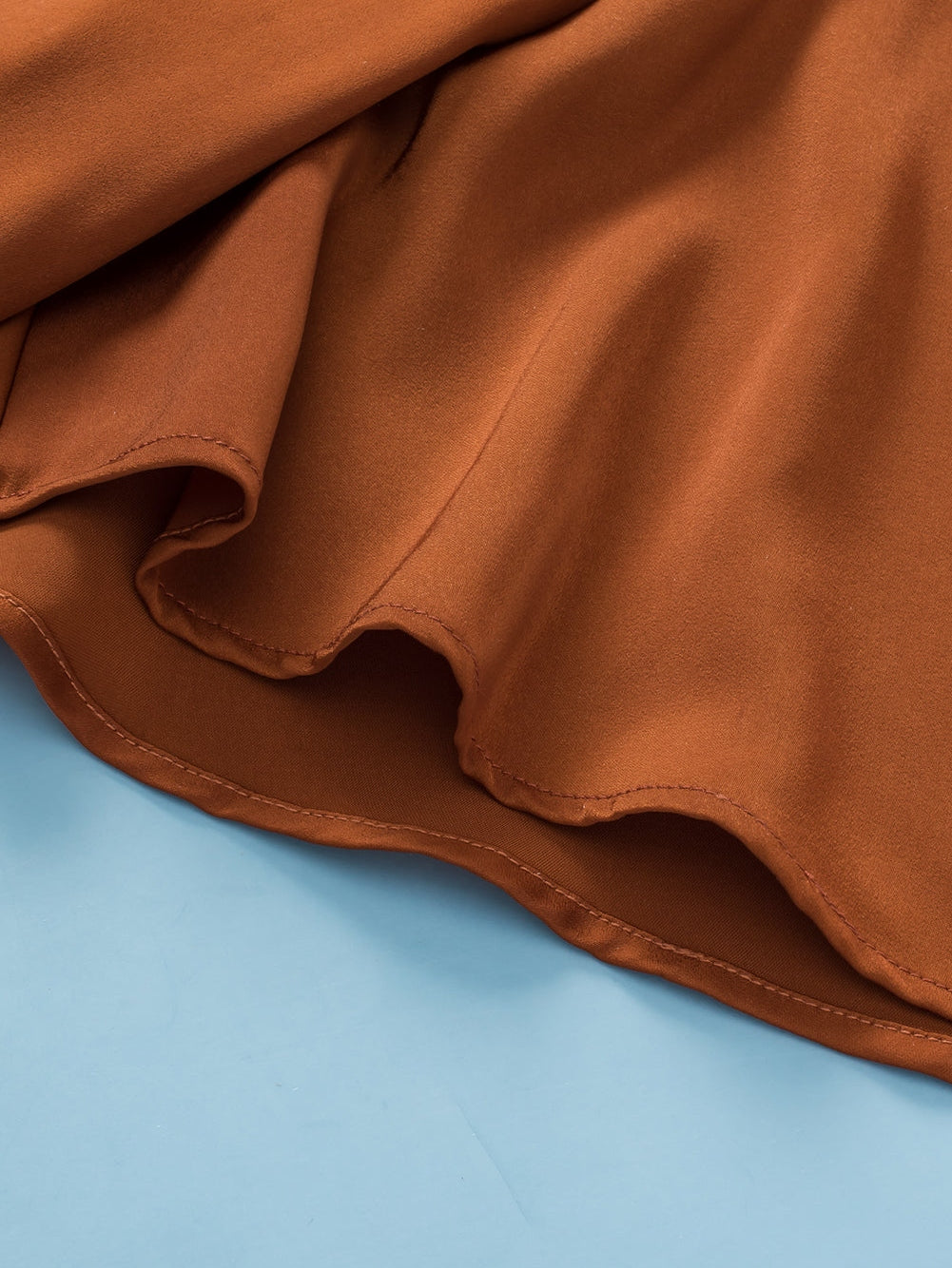 Envision attending a formal dinner party at an upscale restaurant, where the ambiance is intimate and chic. You choose the Chestnut Frilled Split Neck Plus Size Satin Blouse paired with a flowing maxi skirt, creating an effortlessly elegant silhouette. As you engage in conversation around the table, the blouse’s flattering fit and elegant neckline draw admiration from fellow diners. The luxurious satin feel enhances your comfort, allowing you to focus on the evening's festivities as you enjoy gourmet dishes and fine wines, all while looking impeccably stylish.