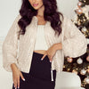 Chic Women's Apricot Sequin Long Sleeve Jacket with Zip-Up Closure and Round Neck - Trendy Outerwear for Any Occasion