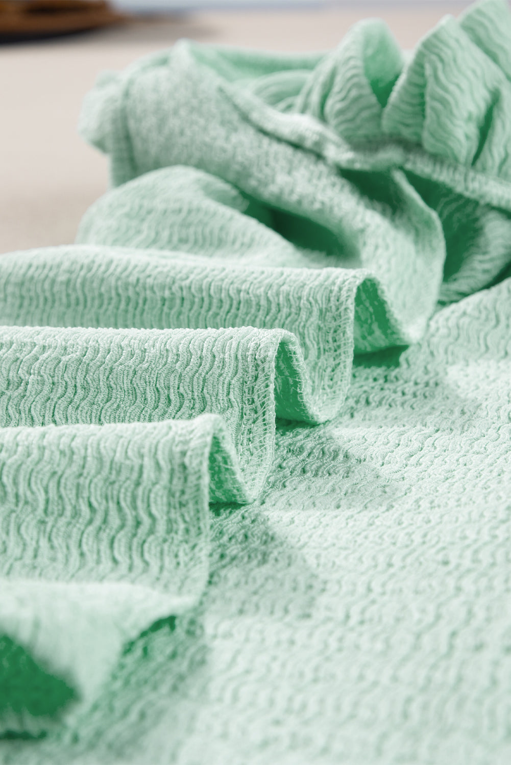 Step into summer with the Clearly Aqua Ruffle Strap Crinkle Textured Tank Top, a perfect blend of style and comfort designed for the modern Southern Belle. This tank top is not just a piece of clothing; it's a statement of effortless elegance tailored for your daily adventures.