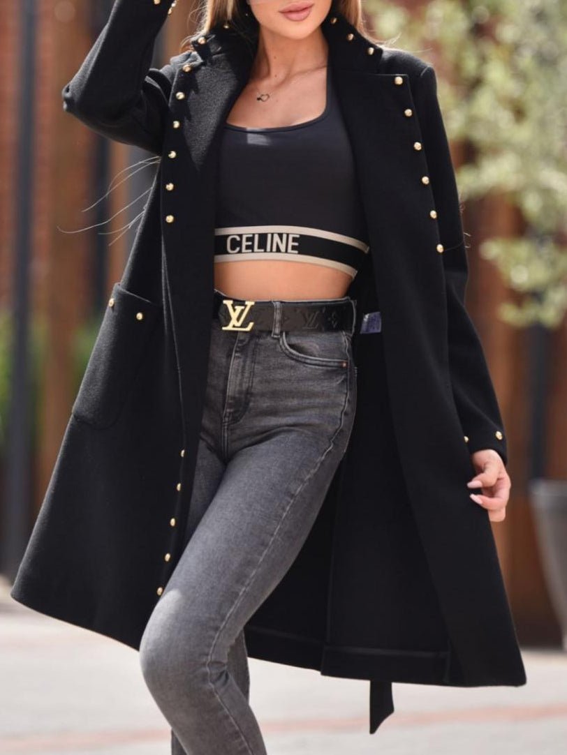 Find cover in the urban wind while maintaining a top-notch look with the INS Simple Double Breasted Rivet Lapel coat! This chic and structured coat is crafted from heavy woven wool with a neckline, wide lapels, long sleeves and double-breasted studs.- Gender: Women